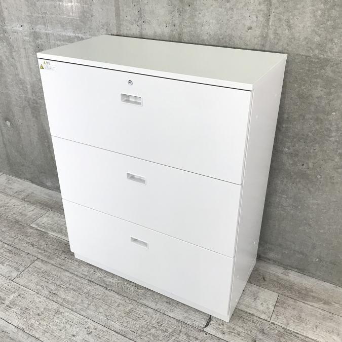 【A4ファイルも沢山収納可能!ホワイトカラーの人気シリーズ3段ラテラル書庫!】/オススメ(おすすめ) /人気商品【弊社使用欄:A01013834】3段ラテラル書庫/ローキャビネット/天板付き/ホワイト/シリンダー錠/ITOKI/THIN LINE■イトーキ/シンライン※取っ手部分日焼あり