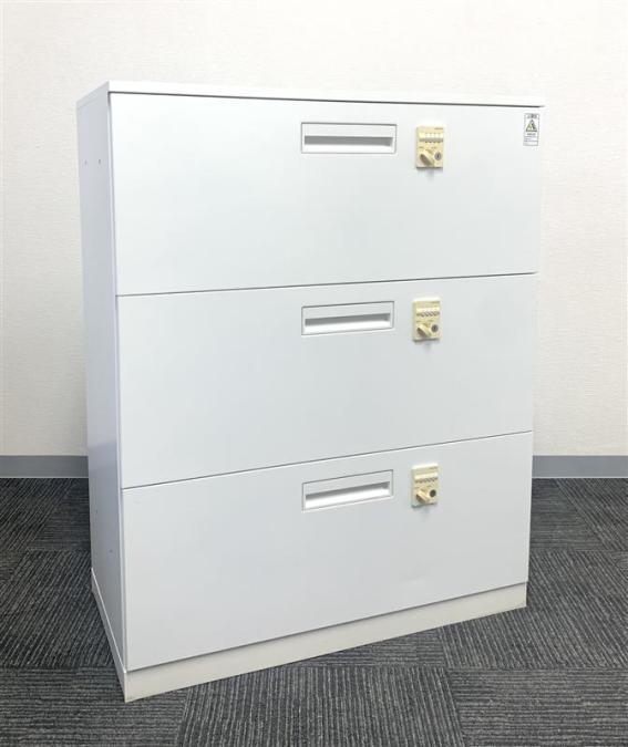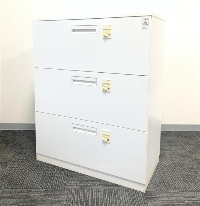 【4台入荷】【収納力抜群の3段ラテラル書庫!A4書類が大量に収納可能!】■コクヨ(KOKUYO)製 エディア(EDIA)シリーズ 3段ラテラル ローキャビネット ■天板/ベース付き ■ホワイト ■シリンダー錠