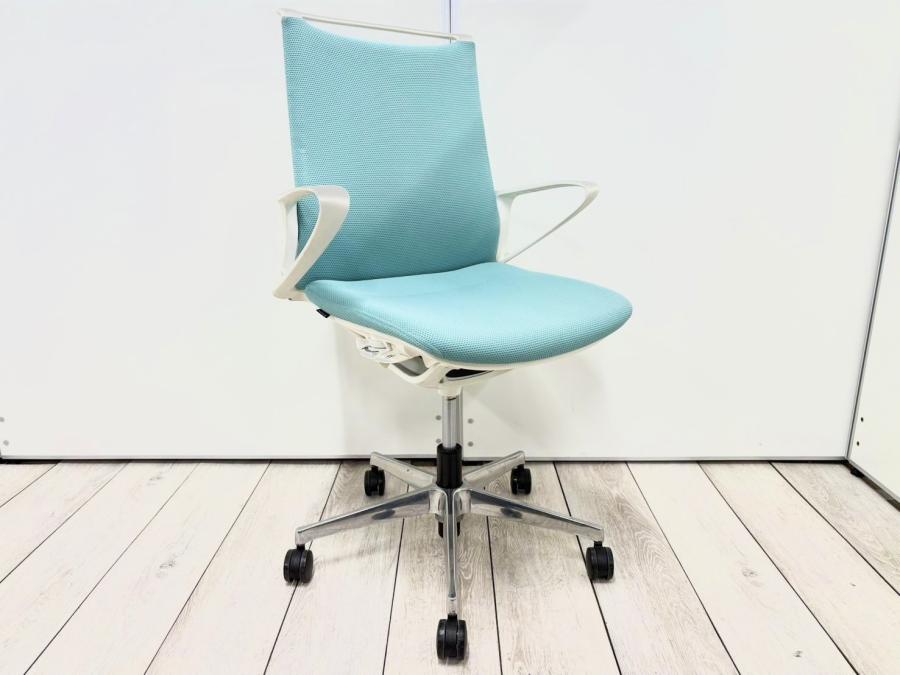 【優れたデザイン性と優しく包み込む座り心地!】グッドデザイン賞を受賞したデザイン性抜群のオフィスシーティング!【在庫入替セール品】 ■オカムラ/モードチェア(mode)/セージ(プレーン) ホワイトフレーム- 立川・八王子店