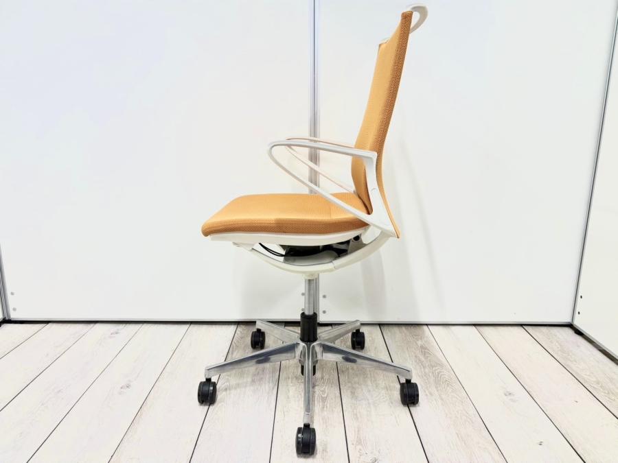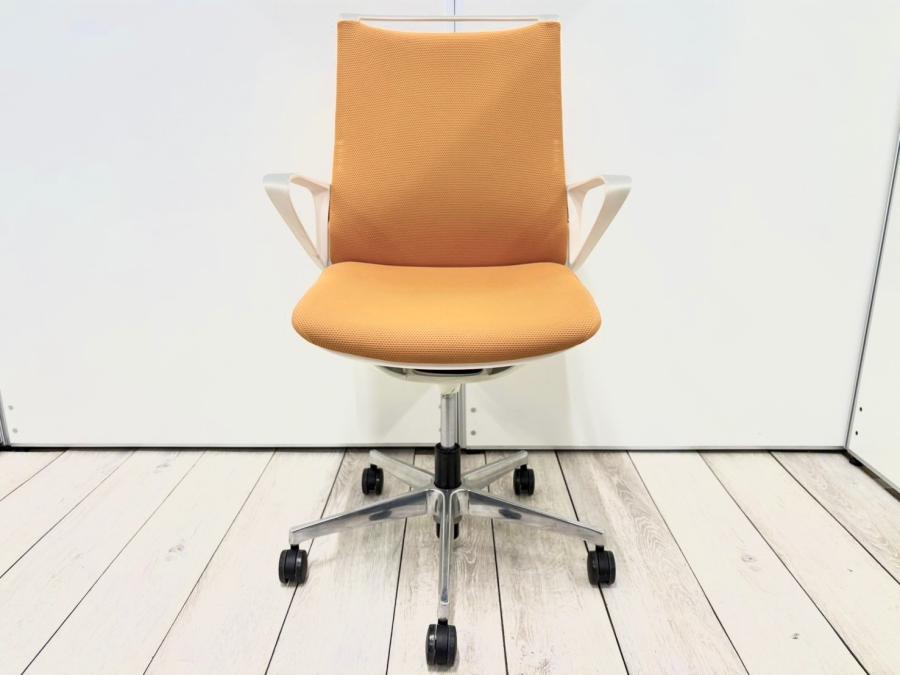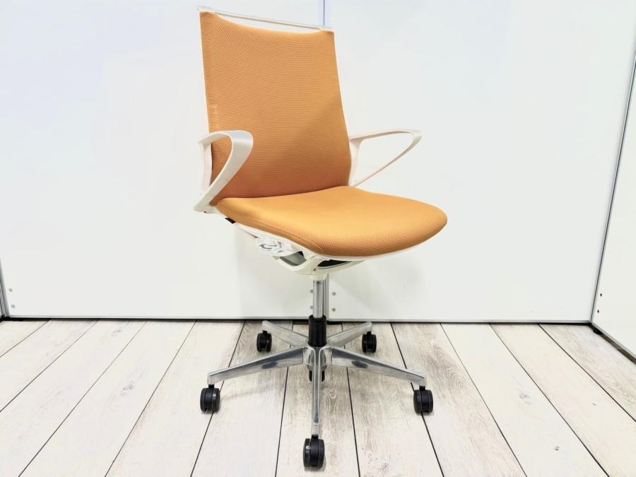 【人の集まる空間に!明るいオレンジでモチベーションアップ!】機能とデザインが融合!インナーメッシュ構造による優しく包み込む座り心地を!【在庫入替セール品】 ■オカムラ/モードチェア(mode)/オレンジ(プレーン) ホワイトフレーム- 立川・八王子店