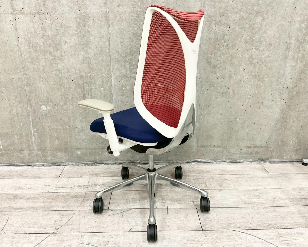 【在庫入替セール】【人間工学から生まれた最先端のワーキングチェア!】■オカムラ サブリナチェア 可動肘付 背:レッド / 座:ダークブルー ■流れるような美しいフォルム!姿勢に心地よくフィット!【K12】