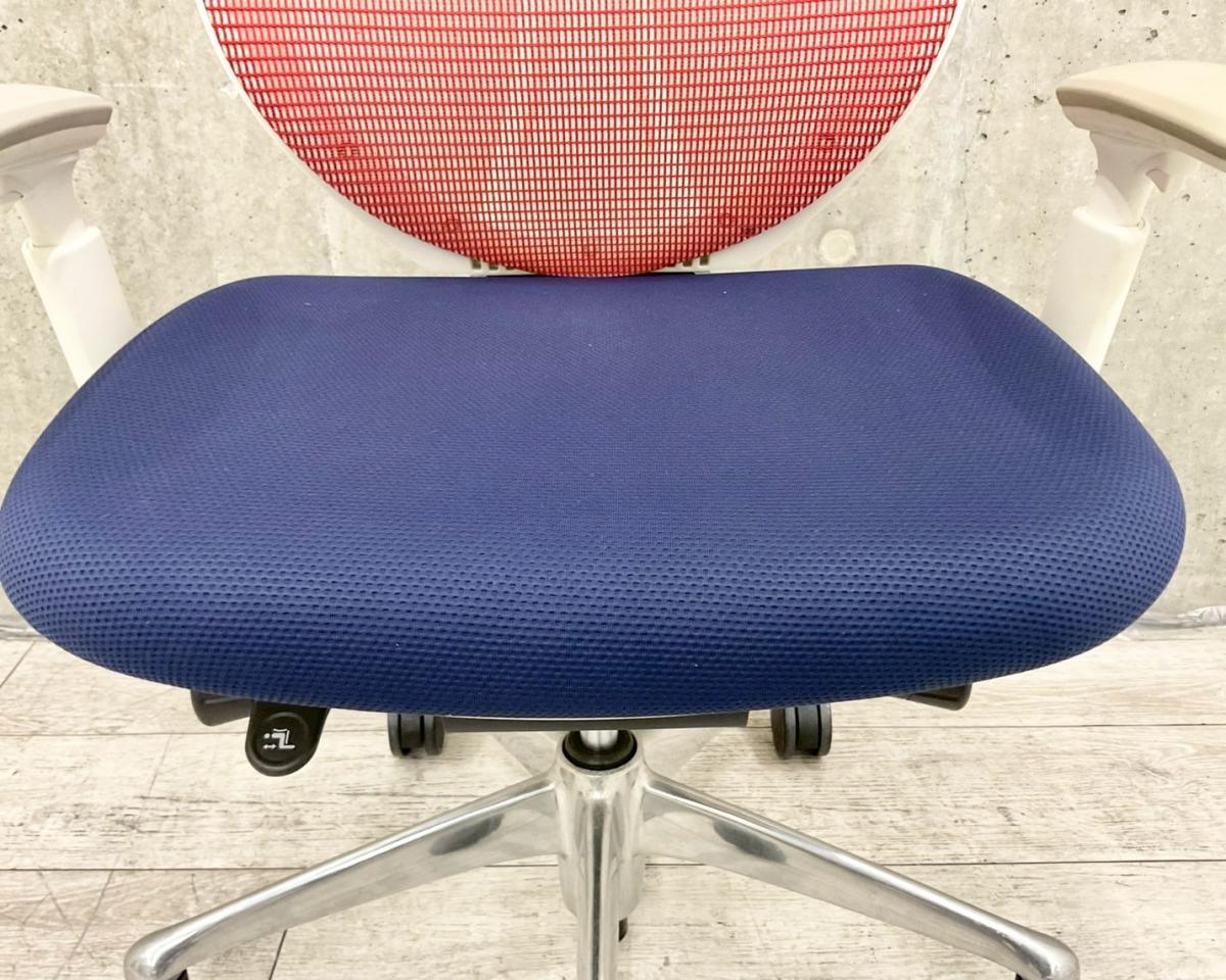 【来店限定キャンペーン】【定価約17万円】【クッション性抜群!長時間のデスクワークにおすすめ!】■オカムラ/サブリナ ■背もたれレッド/座面ブルー/フレームホワイトの珍しいトリコロールカラー!■可動肘 背もたれメッシュ■前傾チルト機能付き