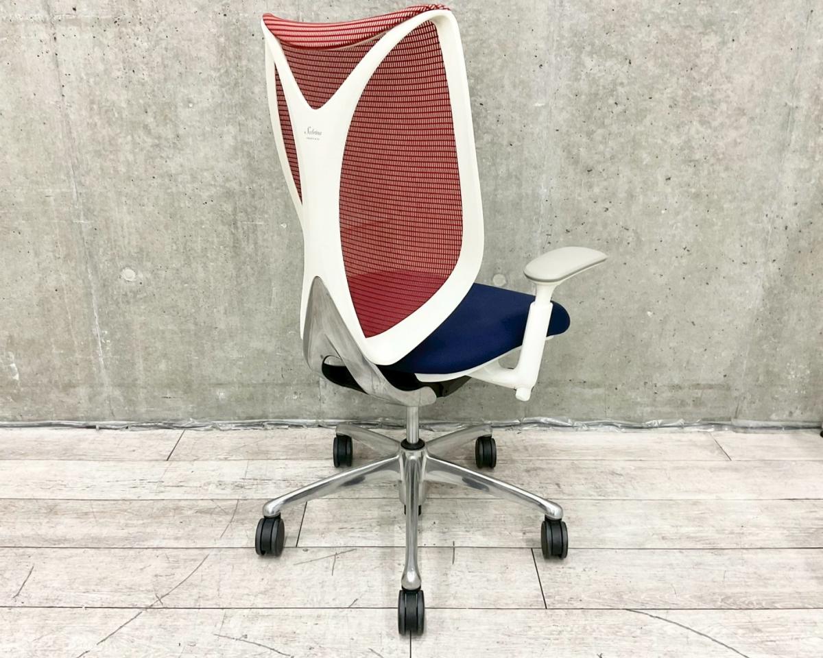 【在庫入替セール】【人間工学から生まれた最先端のワーキングチェア!】■オカムラ サブリナチェア 可動肘付 背:レッド / 座:ダークブルー ■流れるような美しいフォルム!姿勢に心地よくフィット!【K12】