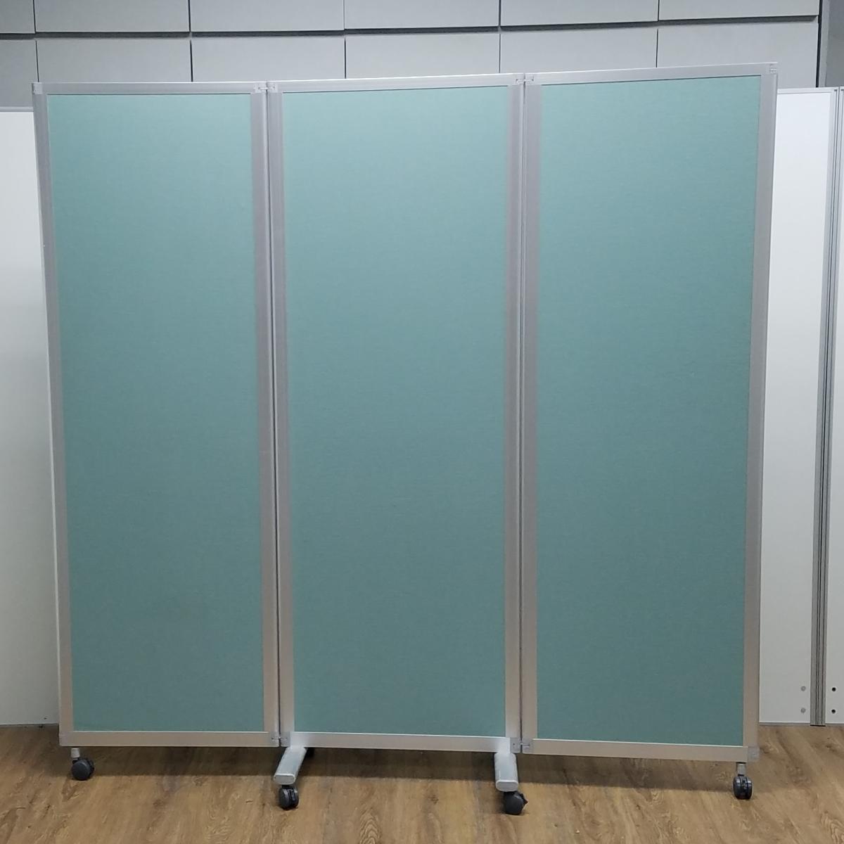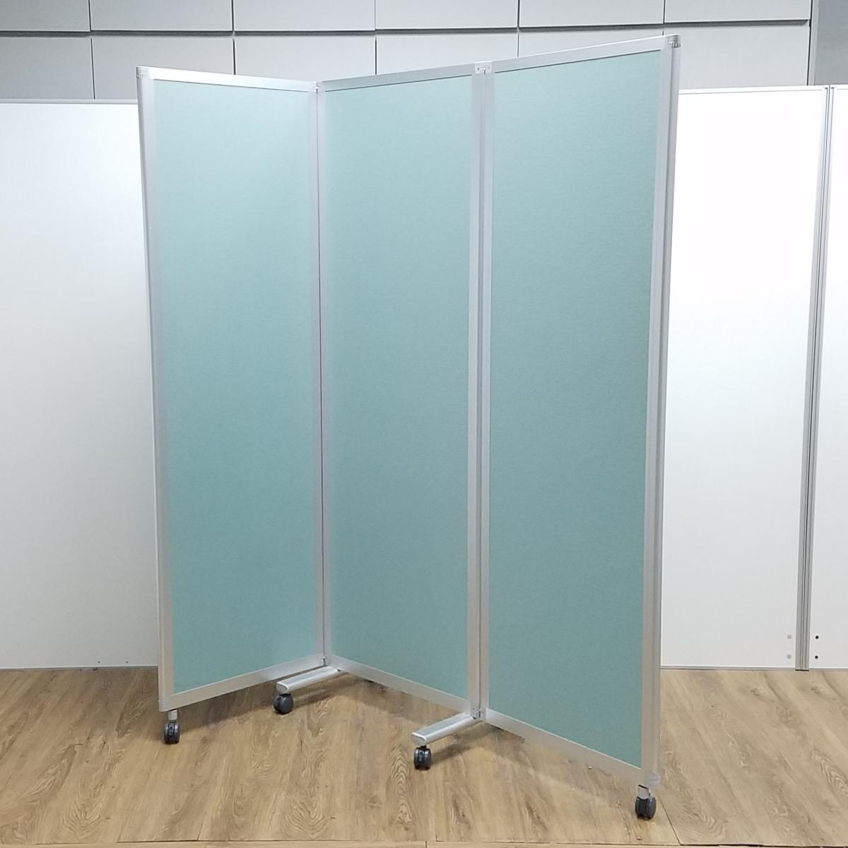 イトーキ製 グリーン W1800×H1800サイズ キャスター付で便利に使える! 希少な3つ折りパーテーション! 折り畳み式間仕切り! 3連パーティション!!- 京都東寺店