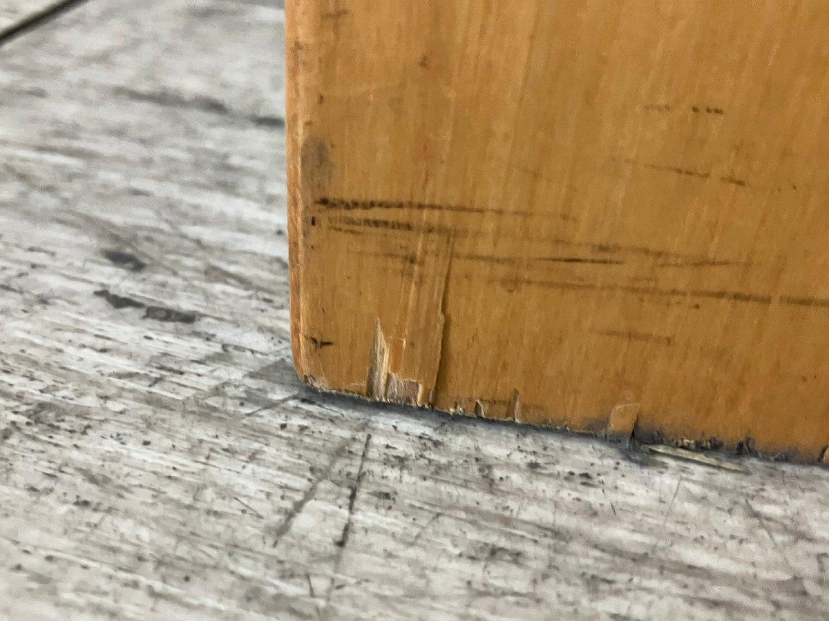 - 目立つ箇所複数あり深い傷・破れ・ほつれ・へたり・しわが商品全体にある。(例、座面・背もたれ、脚部等にある。)