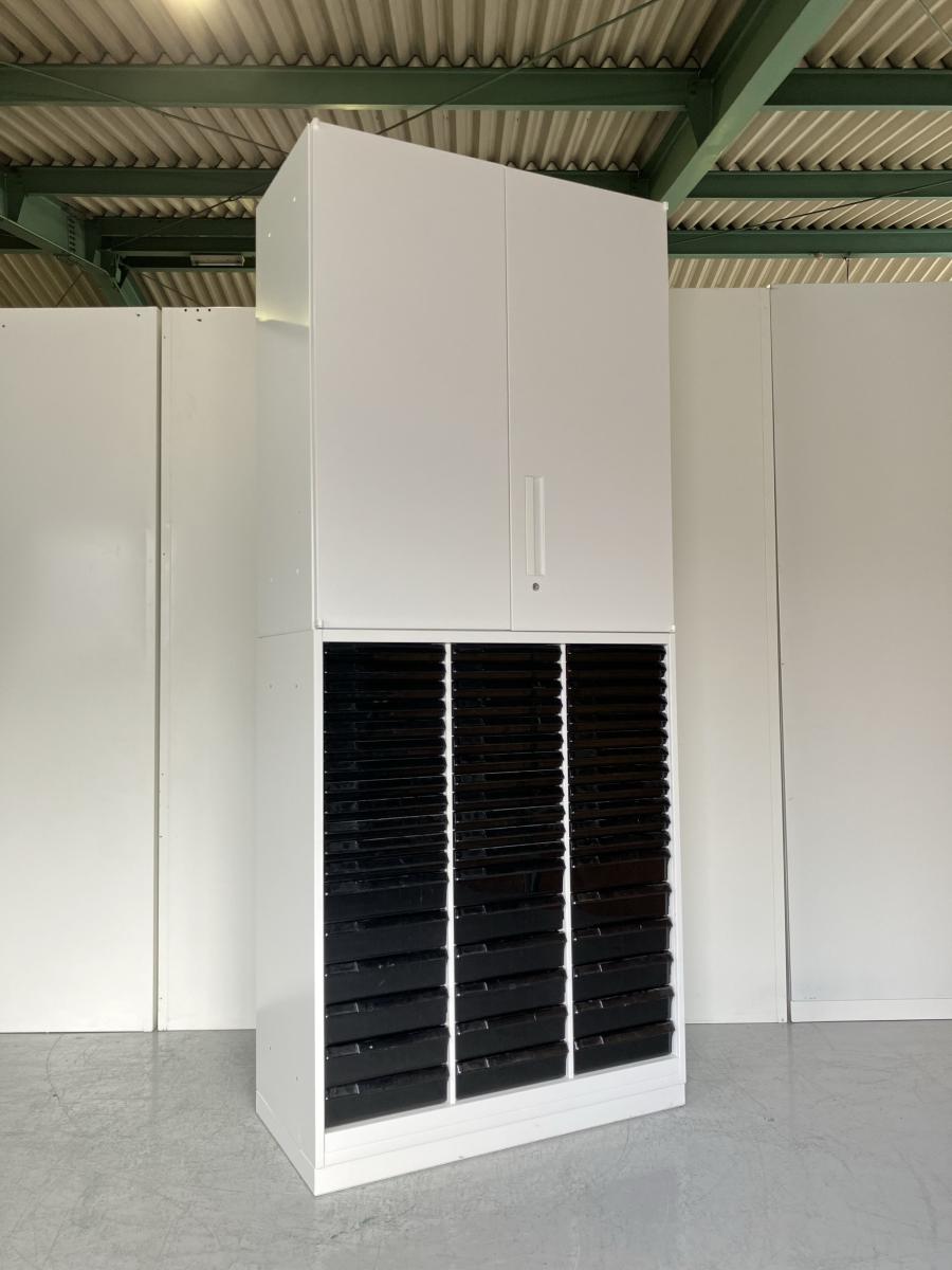 両開き書庫とクリスタルトレイキャビネットの上下セット商品になります!