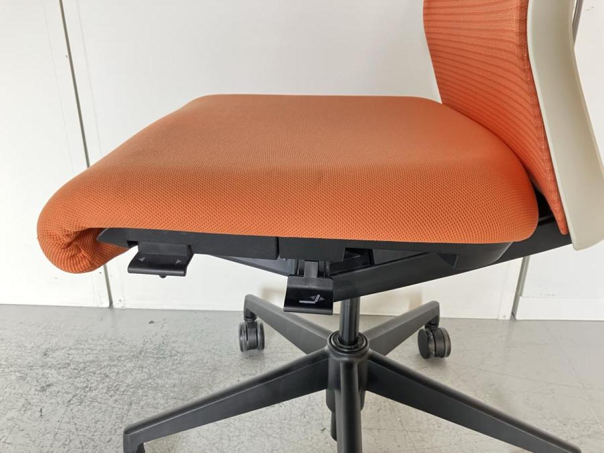 【高いデザイン性と性能を!ワンランク上の座り心地を!】■ウチダ(UCHIDA)製 エルフィチェア 肘無 ■オレンジ×ホワイトフレーム ■メッシュ- 名古屋本店