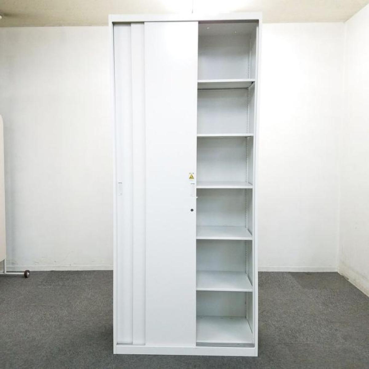 【スライド扉でスペースを有効活用!】中央に収納したファイル書類も取り出しやすい3枚引き戸書庫!【在庫入替セール品!】 ■イトーキ シンラインシリーズ 3枚扉 ホワイト ベース無- 立川・八王子店
