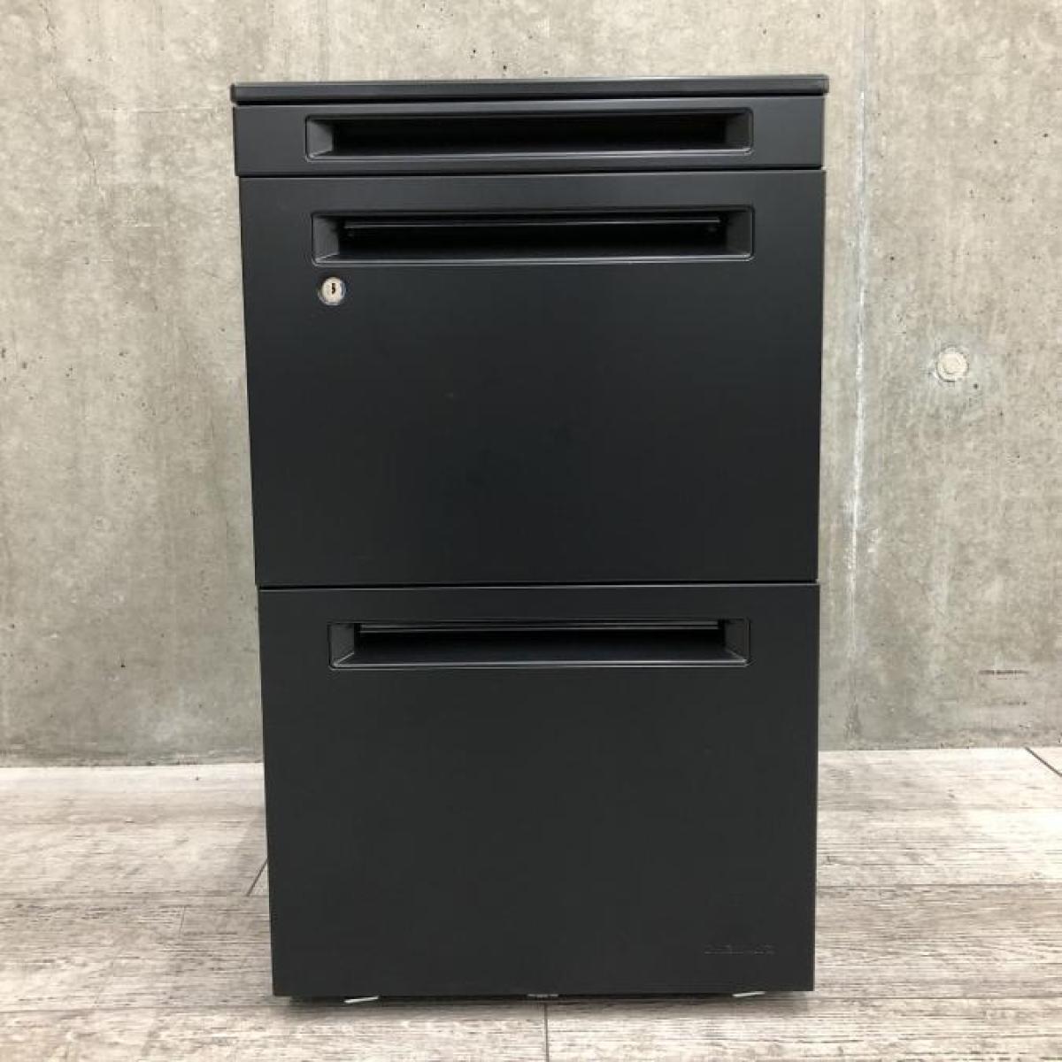 【スタイリッシュなブラックカラーがかっこいい!】■オカムラ(okamura) アドバンスシリーズ 3段ワゴン フリアド用 ■W390㎜ ■シリンダー錠 ■ブラック- 埼玉本店