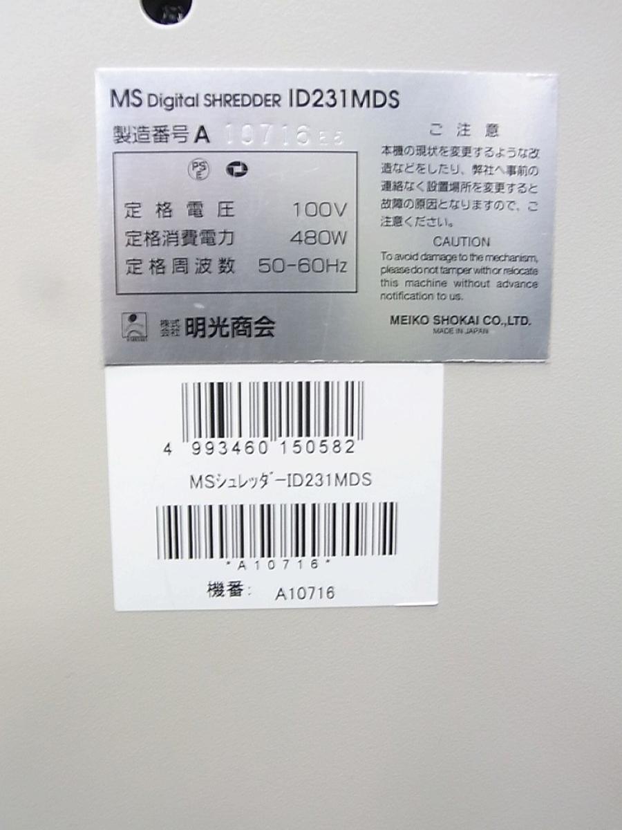【中古】 MS-ID231MD 明光商会 シュレッダー 504615