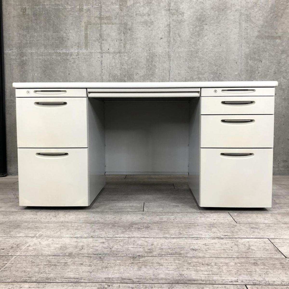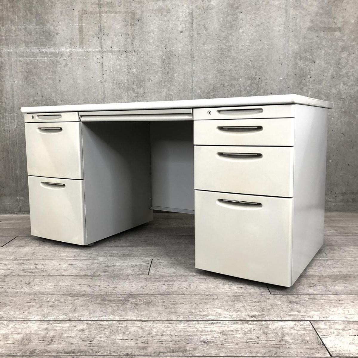 【上長席の必須アイテム!A4ファイルも沢山収納可能な両袖机!】■オカムラ製 SD‐V 両袖机 W1400㎜ ■左袖3段 右袖4段 ■ライトグレー【弊社使用欄:A00999272】- 在庫数