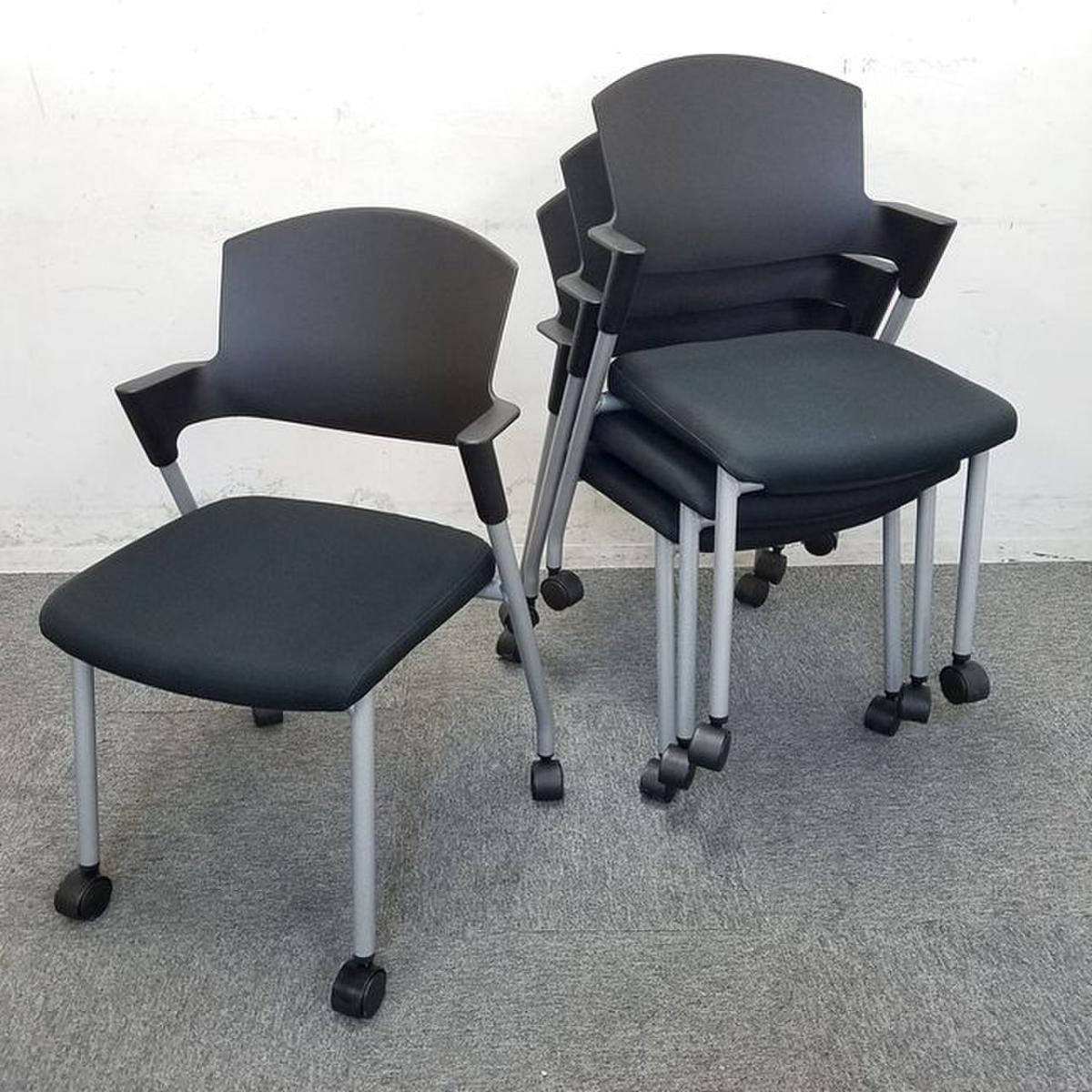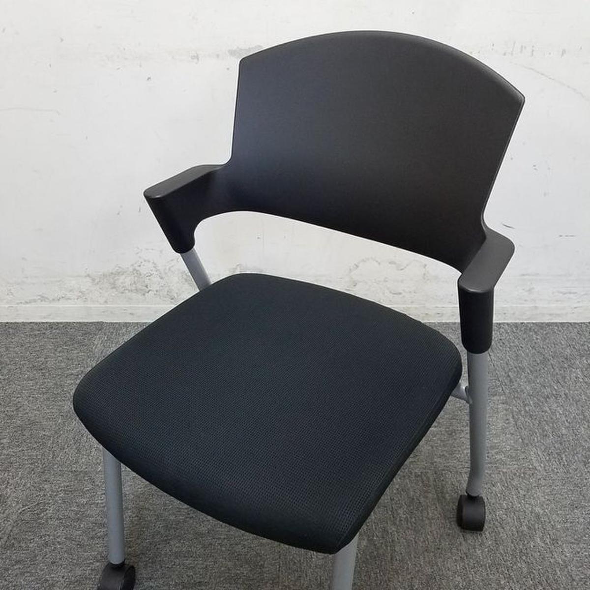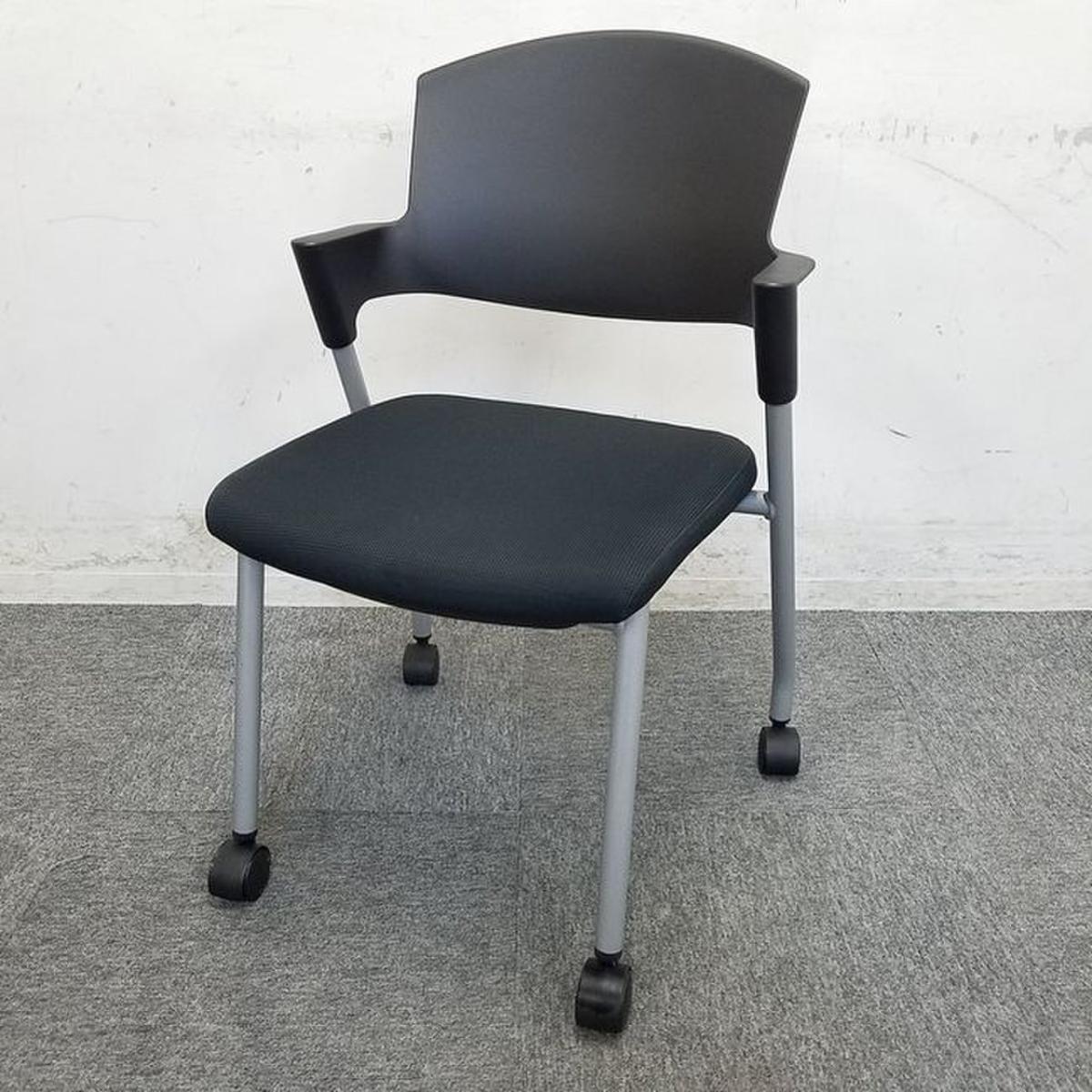 【6/16・8脚入荷予定!】【シンプルスマートなスタッキングチェア!分厚いクッションで長時間でも快適な座り心地!】■コクヨ製 プロッティ スタッキングチェア 肘付ミーティングチェア ■固定肘 ■キャスター付 ■ブラック ■背面樹脂 オフィスバスターズ梅田本店