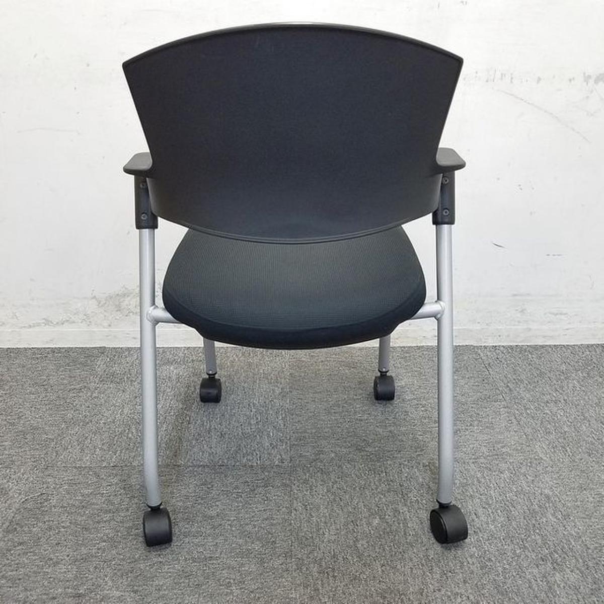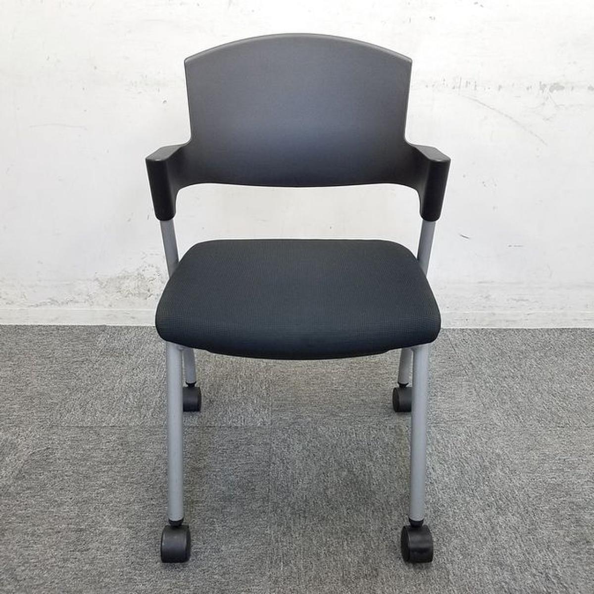 【6/16・8脚入荷予定!】【シンプルスマートなスタッキングチェア!分厚いクッションで長時間でも快適な座り心地!】■コクヨ製 プロッティ スタッキングチェア 肘付ミーティングチェア ■固定肘 ■キャスター付 ■ブラック ■背面樹脂 オフィスバスターズ梅田本店