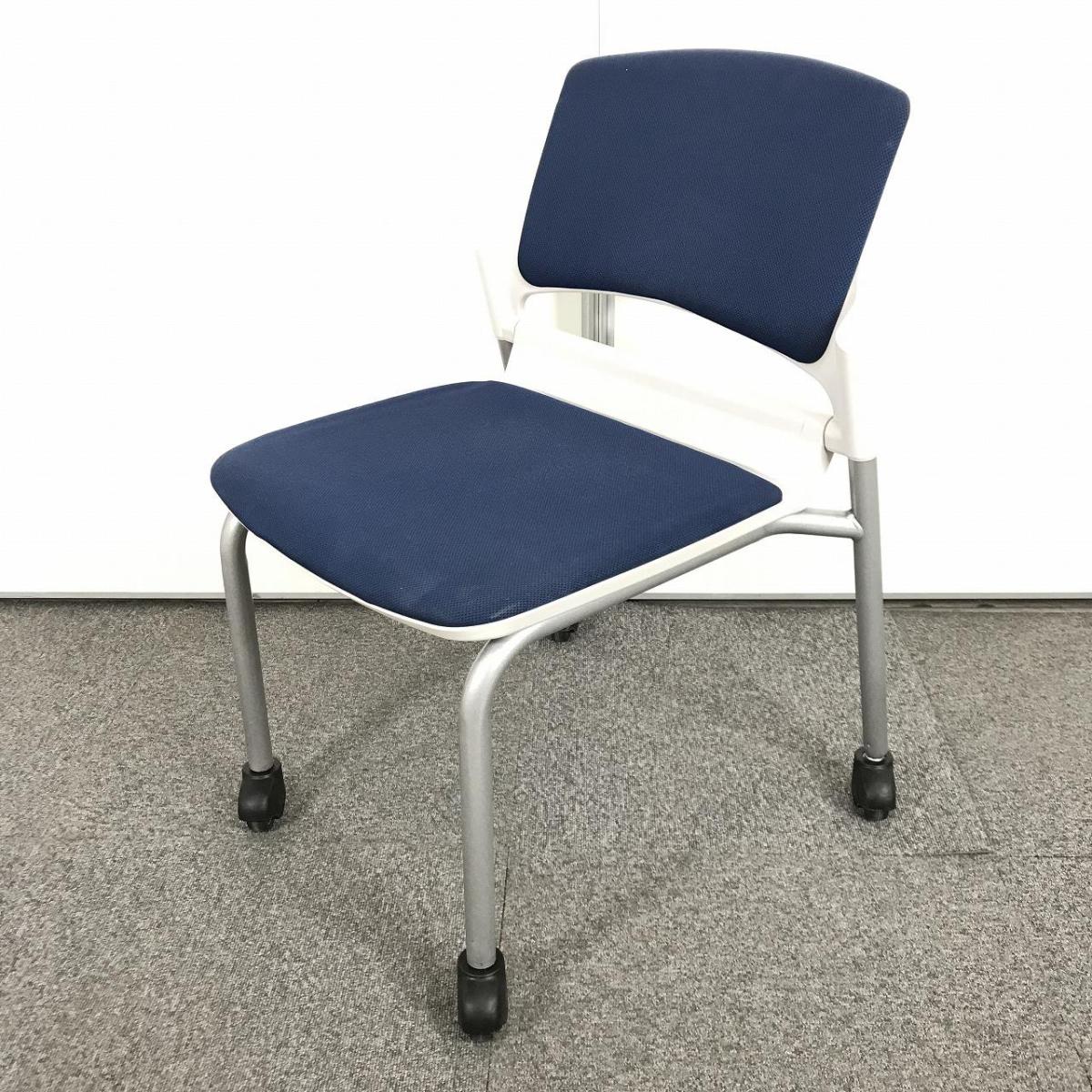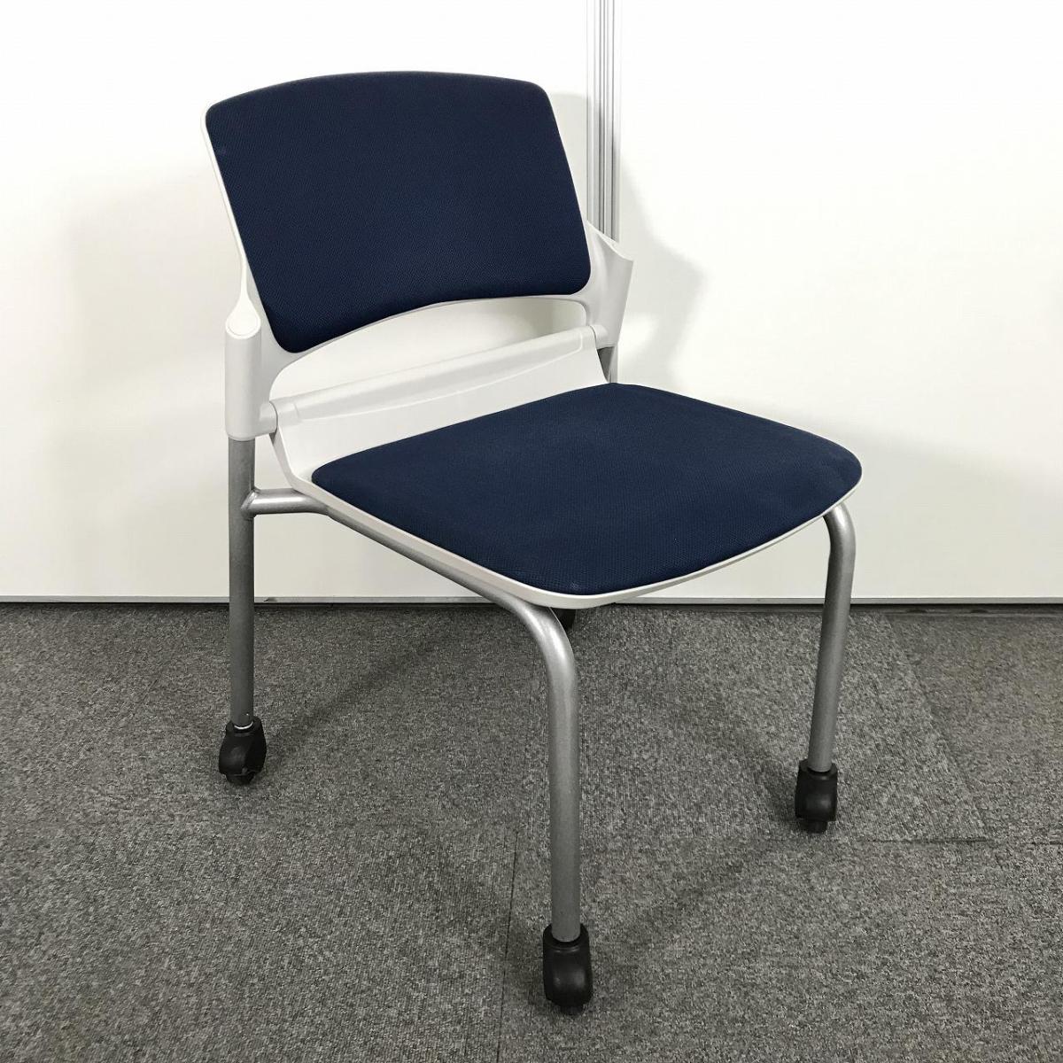 【残り2脚の為、お安く!】【キャスター付きで使いやすい!ミーティングに最適!】■ウチダ(UCHIDA)製 MF-180シリーズ スタッキングチェア ミーティングチェア ■キャスター付き ■レイズンブルー×ホワイトシェル