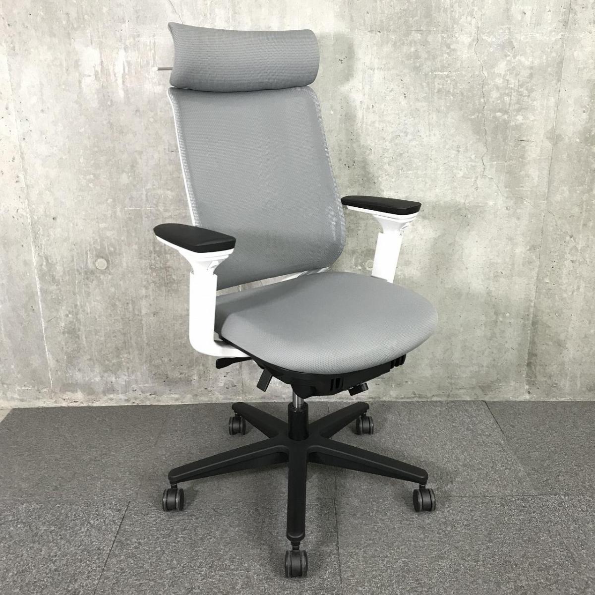 【大人気シンプルなメッシュチェア!上質な座り心地!】■コクヨ(KOKUYO)製 ミトラシリーズ (Mitra) 肘付 ハイバック ■可動肘 ■背面メッシュ ■ヘッドレスト ハンガー ランバー付き ■グレー【弊社使用欄:A00999330】- 在庫数