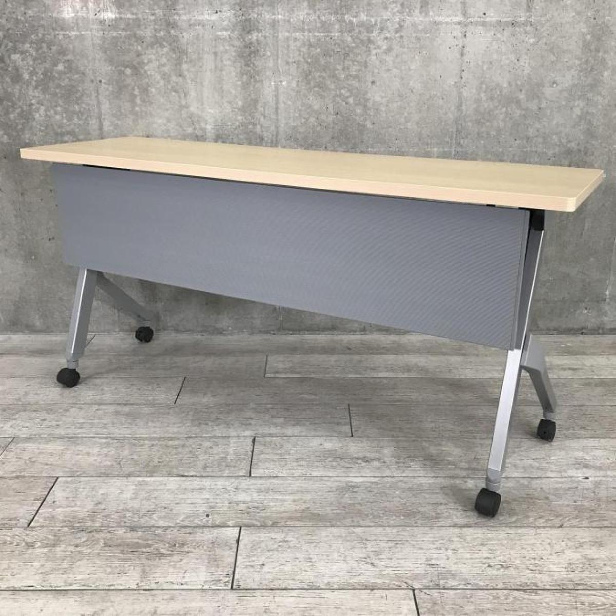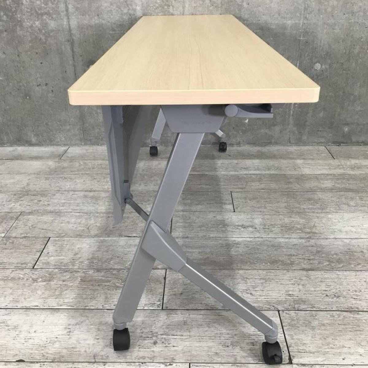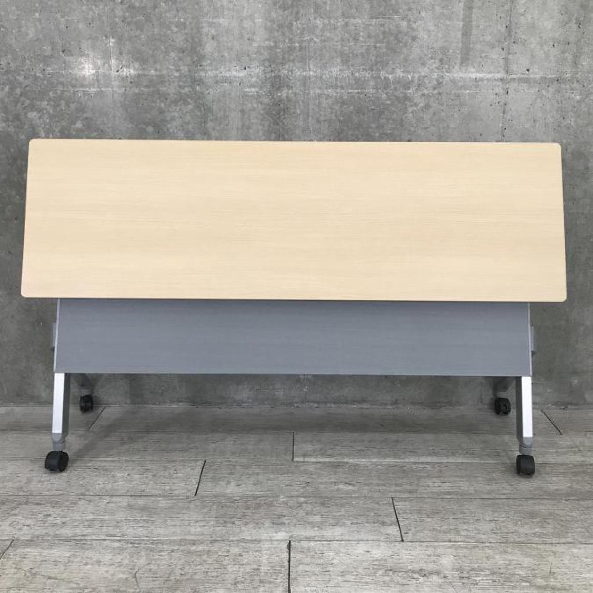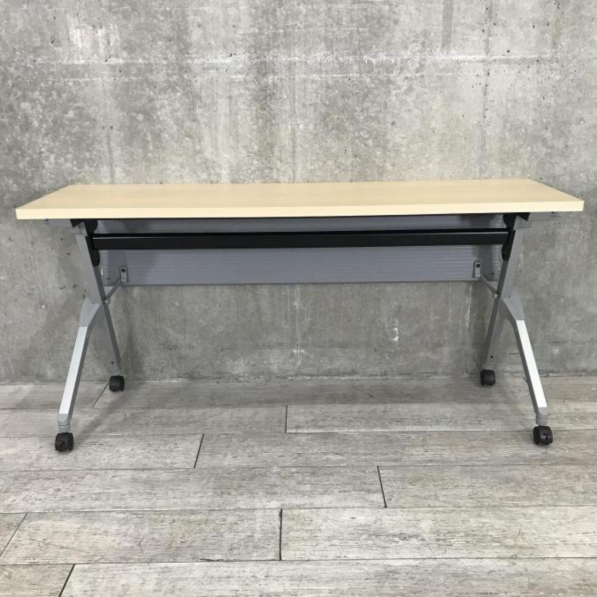 【W1500の折り畳みテーブルが入荷!】◆オカムラ/フラプター ナチュラル 木目 サイドスタックテーブル 収納 中古 博多 天神 九州最大級 オフィスバスターズ