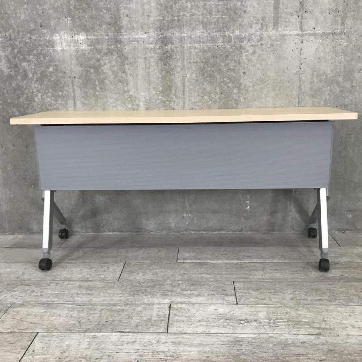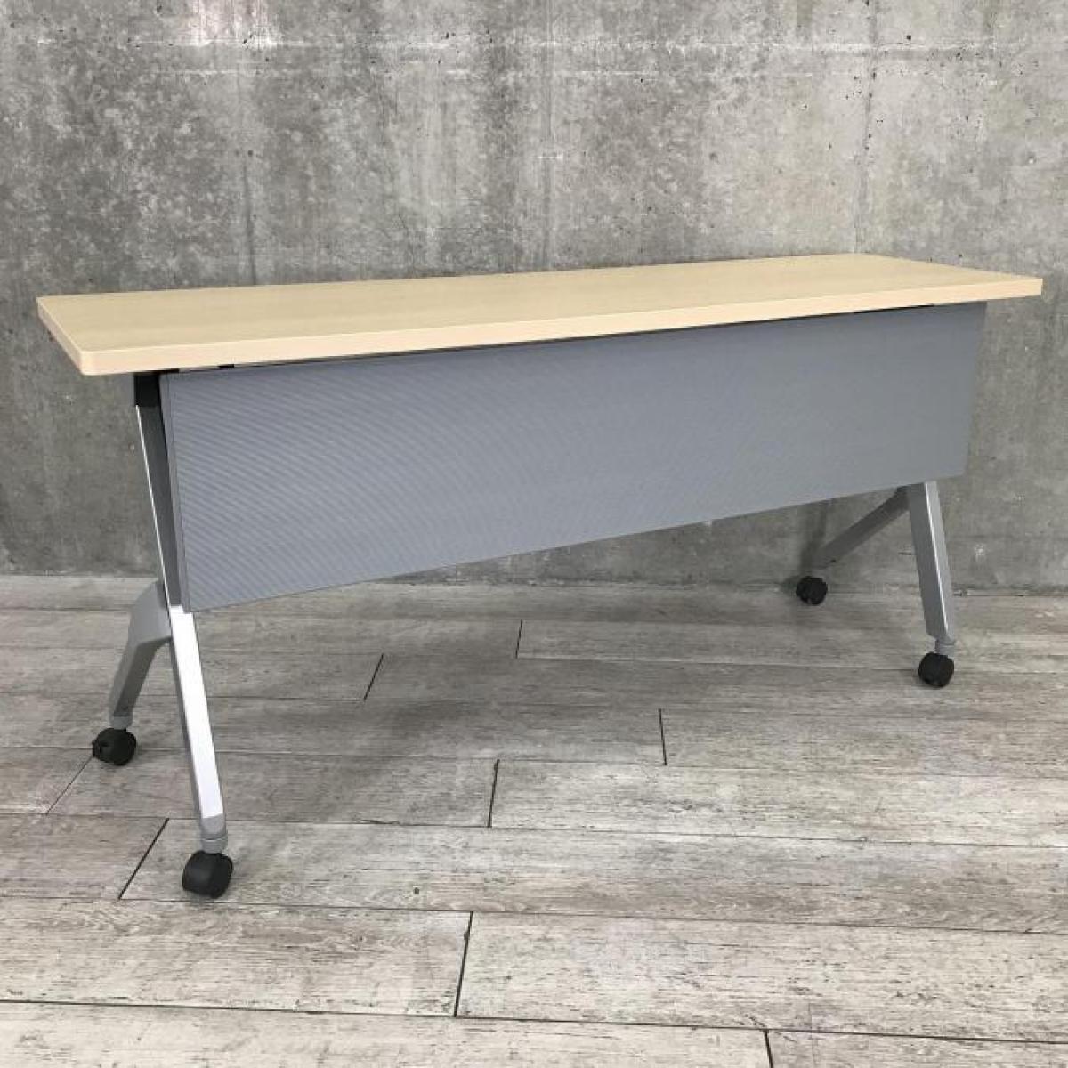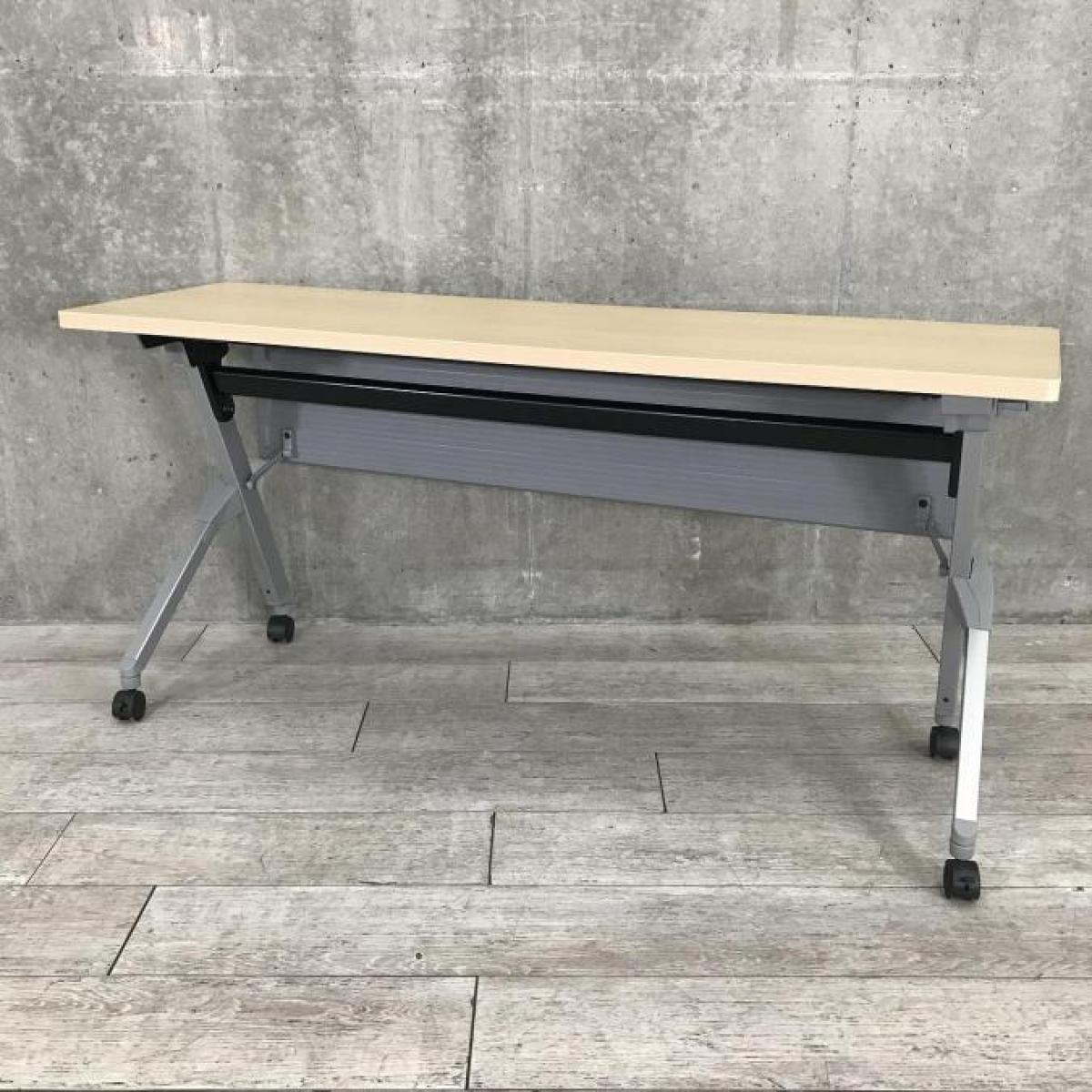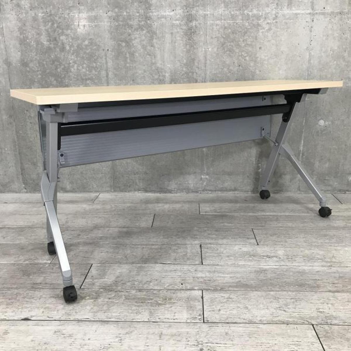 【W1500の折り畳みテーブルが入荷!】◆オカムラ/フラプター ナチュラル 木目 サイドスタックテーブル 収納 中古 博多 天神 九州最大級 オフィスバスターズ