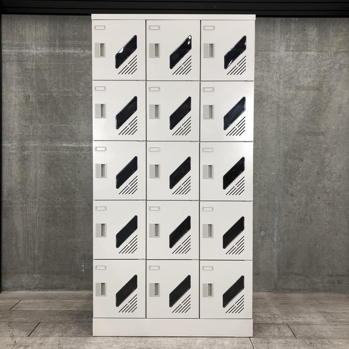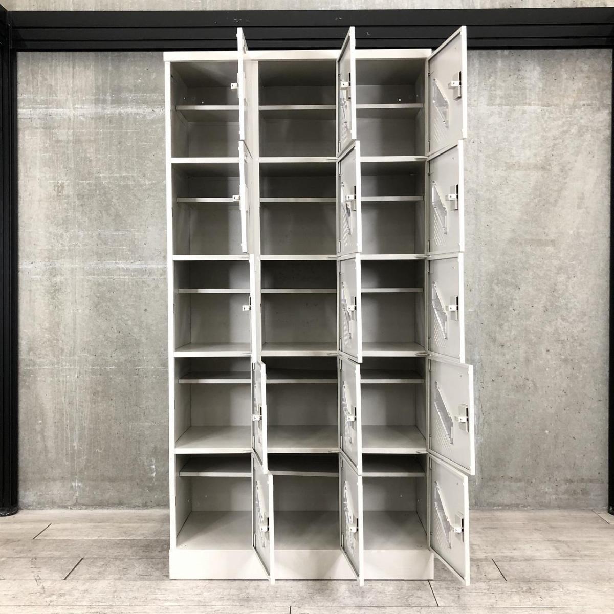 【入荷の珍しい15人用シューズボックス!小窓付き!】■オカムラ(okamura) シューズボックス 15人用 3列×5段 W900×D400 ■グレー ■鍵穴なし 【弊社使用欄:A00999279】【ID】- 在庫数