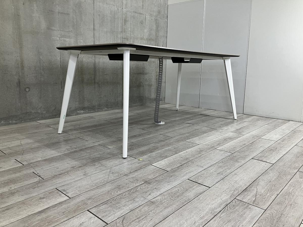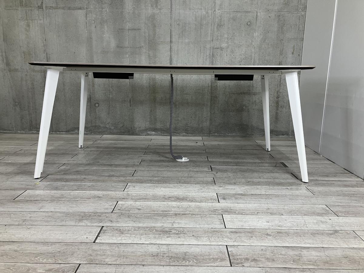 ミディアムブラウン天板・シャープなホワイト脚でお洒落なデザインの大型テーブル。