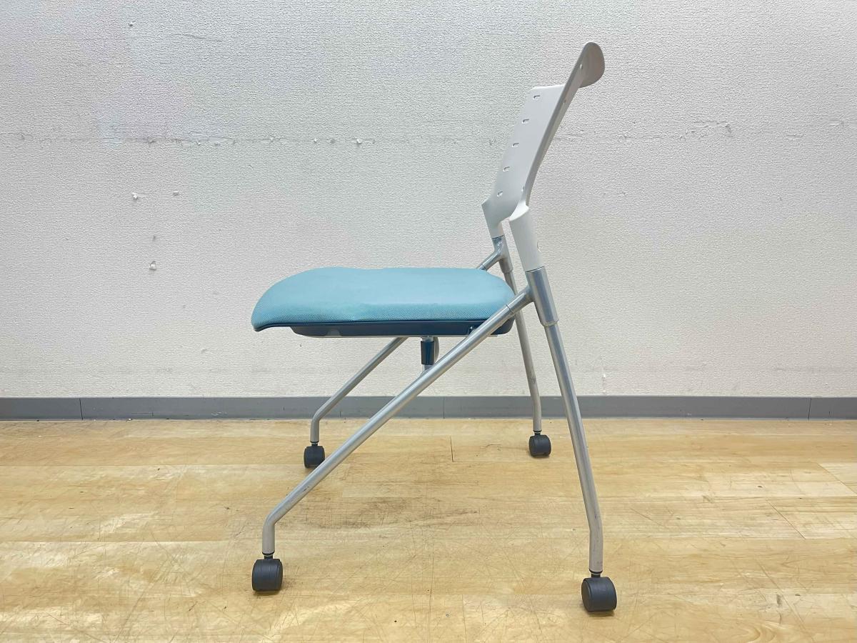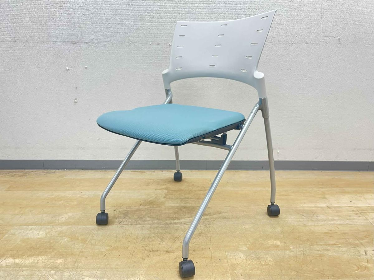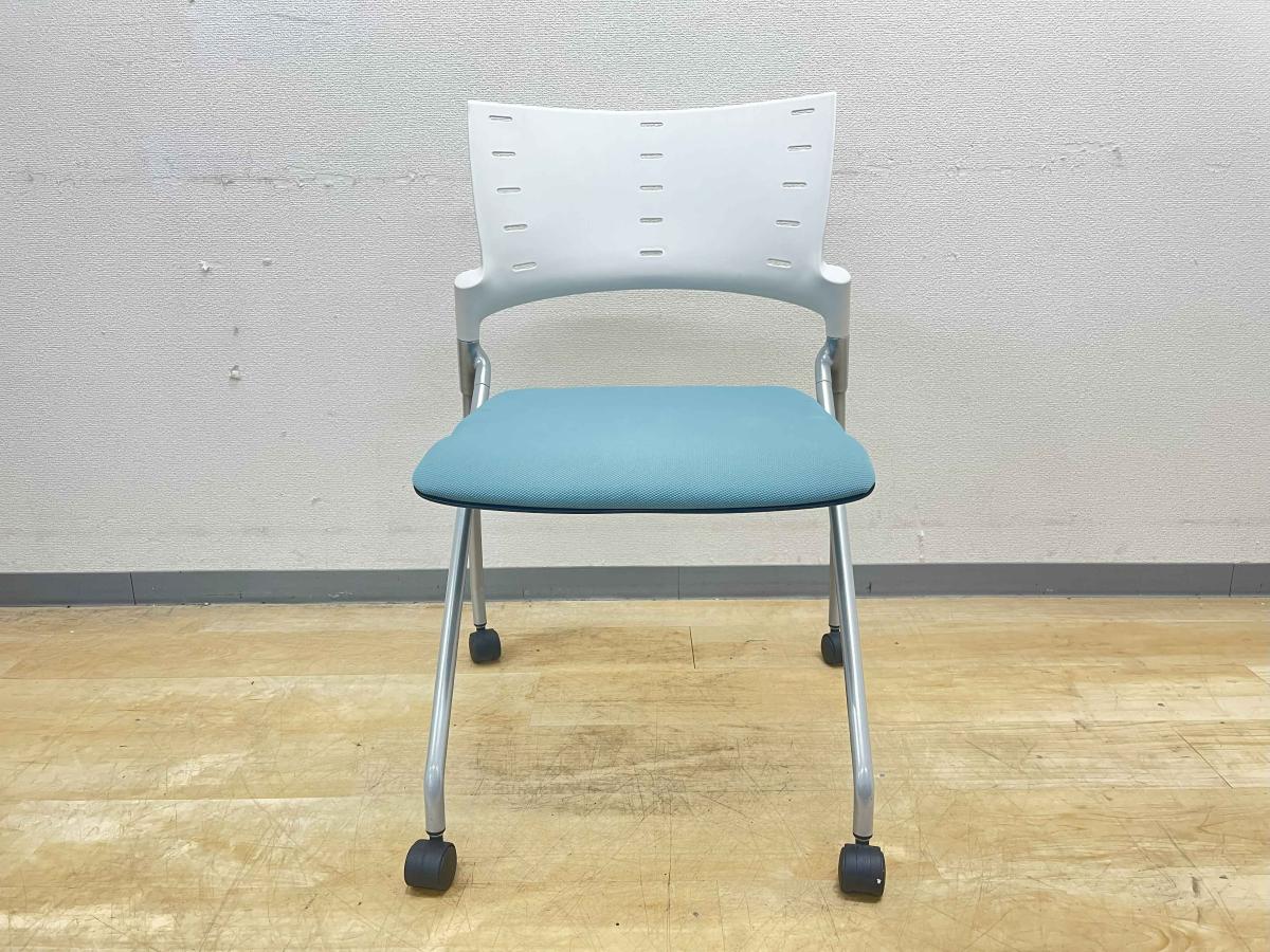 【グッドデザイン賞で品質は折り紙付!平行スタックで省スペース収納!】■イトーキ(ITOKI)製 マノスチェア ネスティングチェア 会議用 背面ヌードタイプ ■ブルー×ホワイトシェル