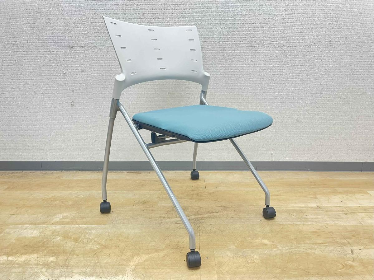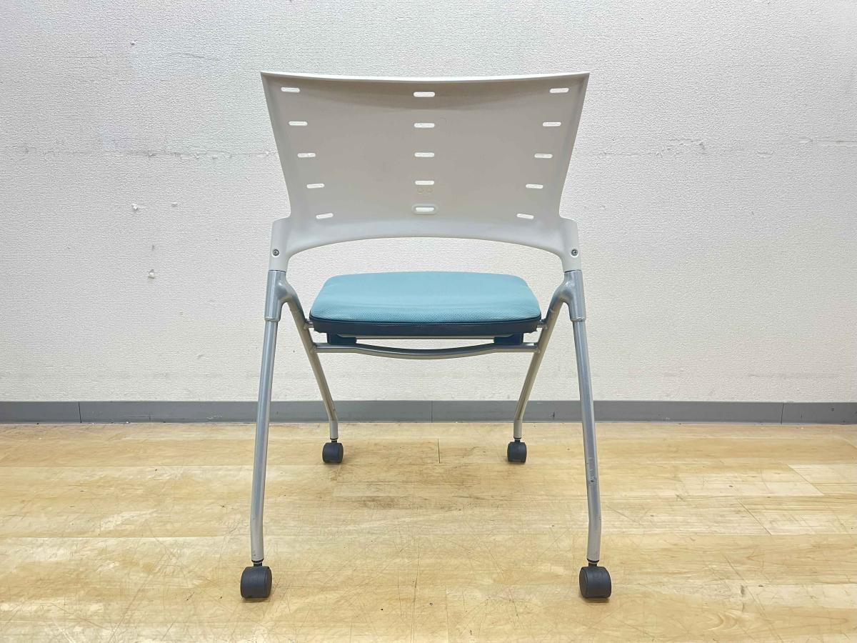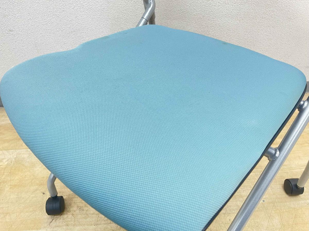 【関東倉庫在庫品】【フレキシブルに使える!平行ネスティングで省スペース化!】■イトーキ(ITOKI)製 マノス(MANOSS) ネスティングチェア ミーティングチェア ■背パッド付 ■キャスター付 ■ブルー【弊社使用欄:A01014525】【ECBMC】