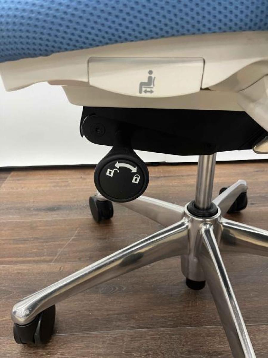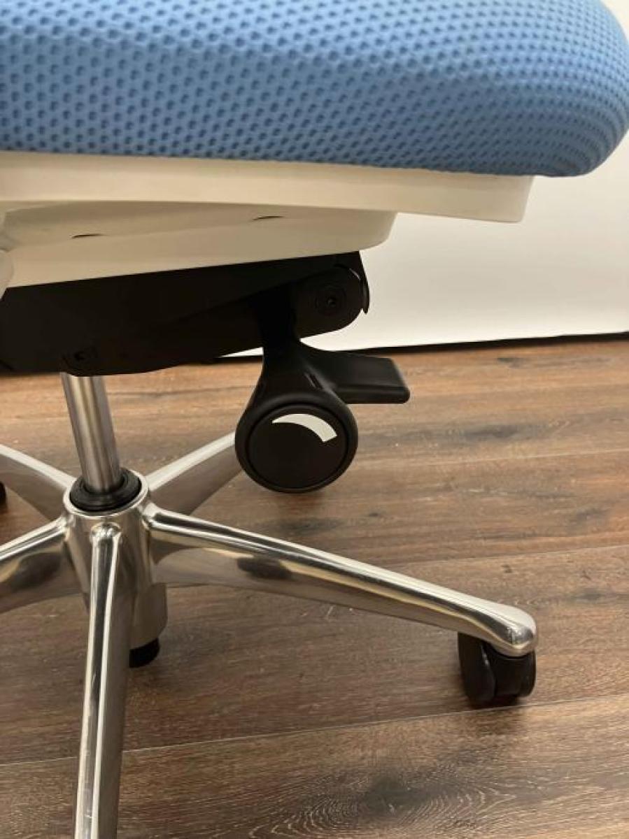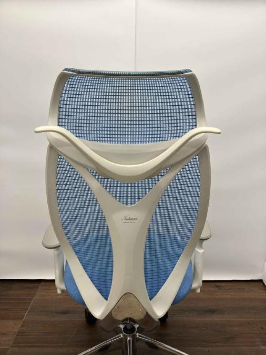 【在庫入れ替えSALE】人気/高級/前傾 オカムラ(okamura)製 サブリナチェア (Sabrina) ハイバック 背面メッシュ 可動肘付 ハンガー付 アクアブルー ボディ:ホワイト- 岐阜店