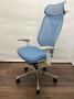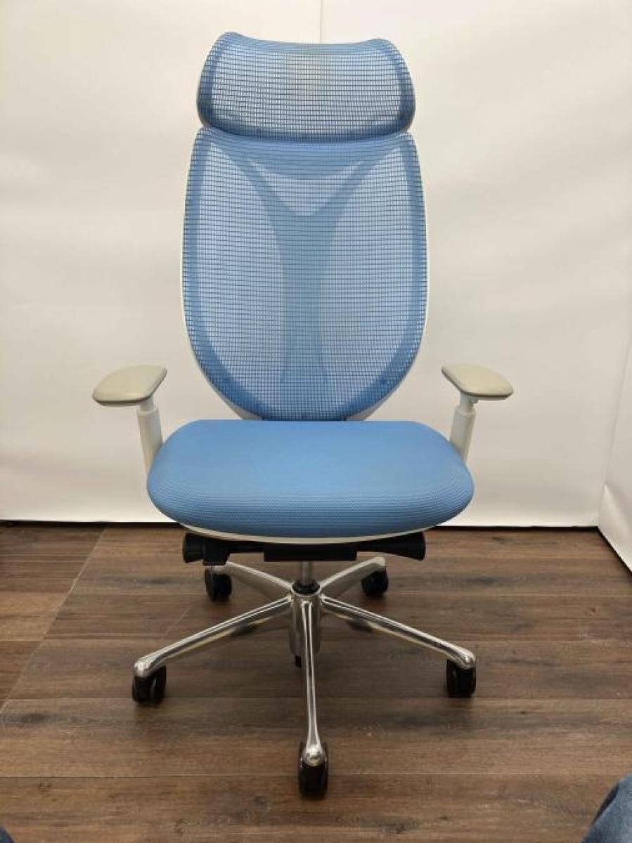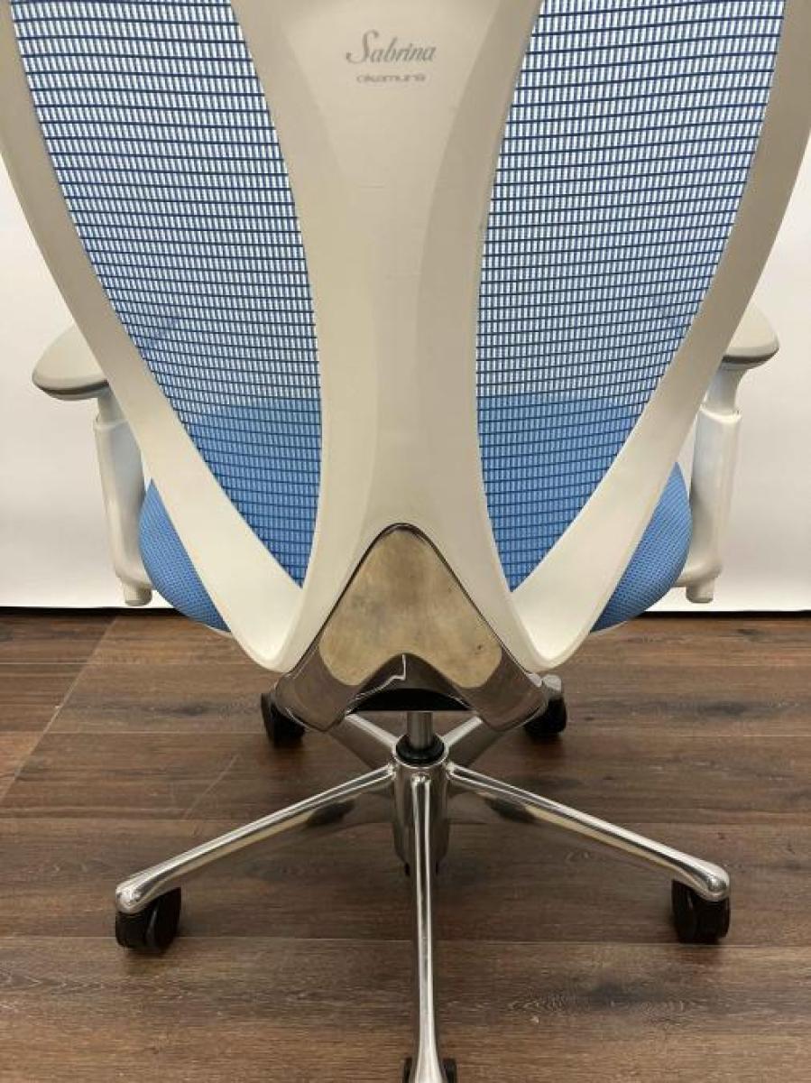 【在庫セール品】【定価約16万円】【前傾チルト付!流れるような美しいフォルムの最高級メッシュチェア!】■オカムラ(okamura)製 Sabrina(サブリナ) ハイバック 肘付き ■可動肘 ■背面メッシュ:アクアブルー/座面:ブルー×ホワイトフレーム【AD】