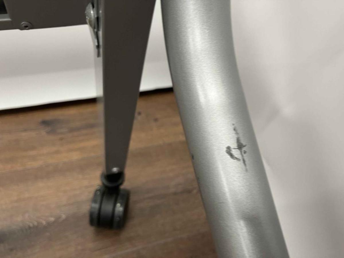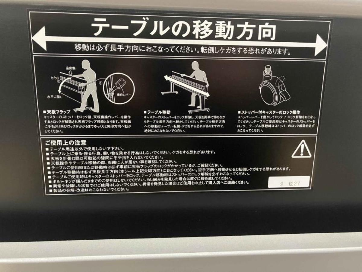 - 一部不具合あり天板歪み、アジャスター無し、キャスター使用不可ようなそのテーブルの本来の効用を果たすための機能以外の一部が使用不可な状態。(例、キャスターロッ ク機能使用不可、棚板無し等がある。)