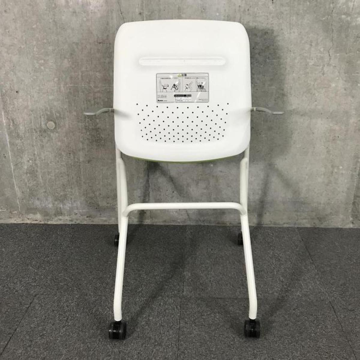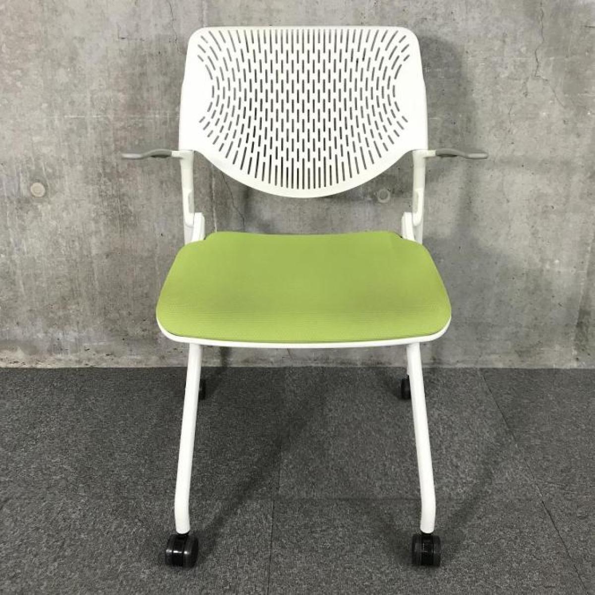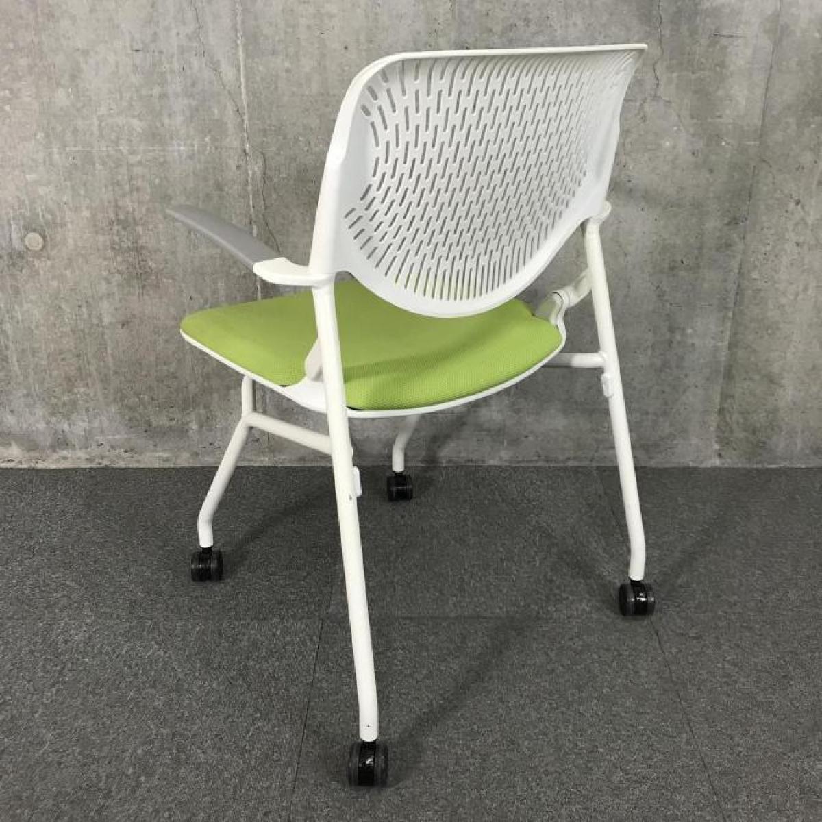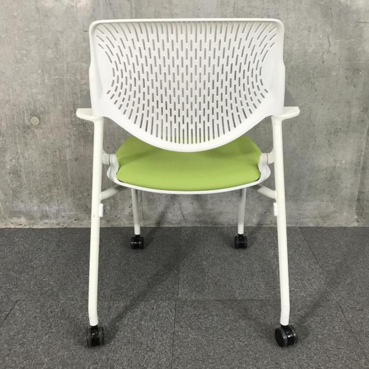 【コストパフォーマンス重視の方オススメ!通気性抜群!】■オカムラ製 ルナ 肘付ネスティングチェア ■座面グリーン×背面ホワイト ■固定肘 ■背面樹脂メッシュ ■キャスター付サーキュラーバリューCO2削減量の算出について