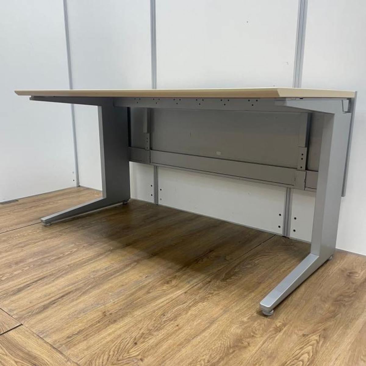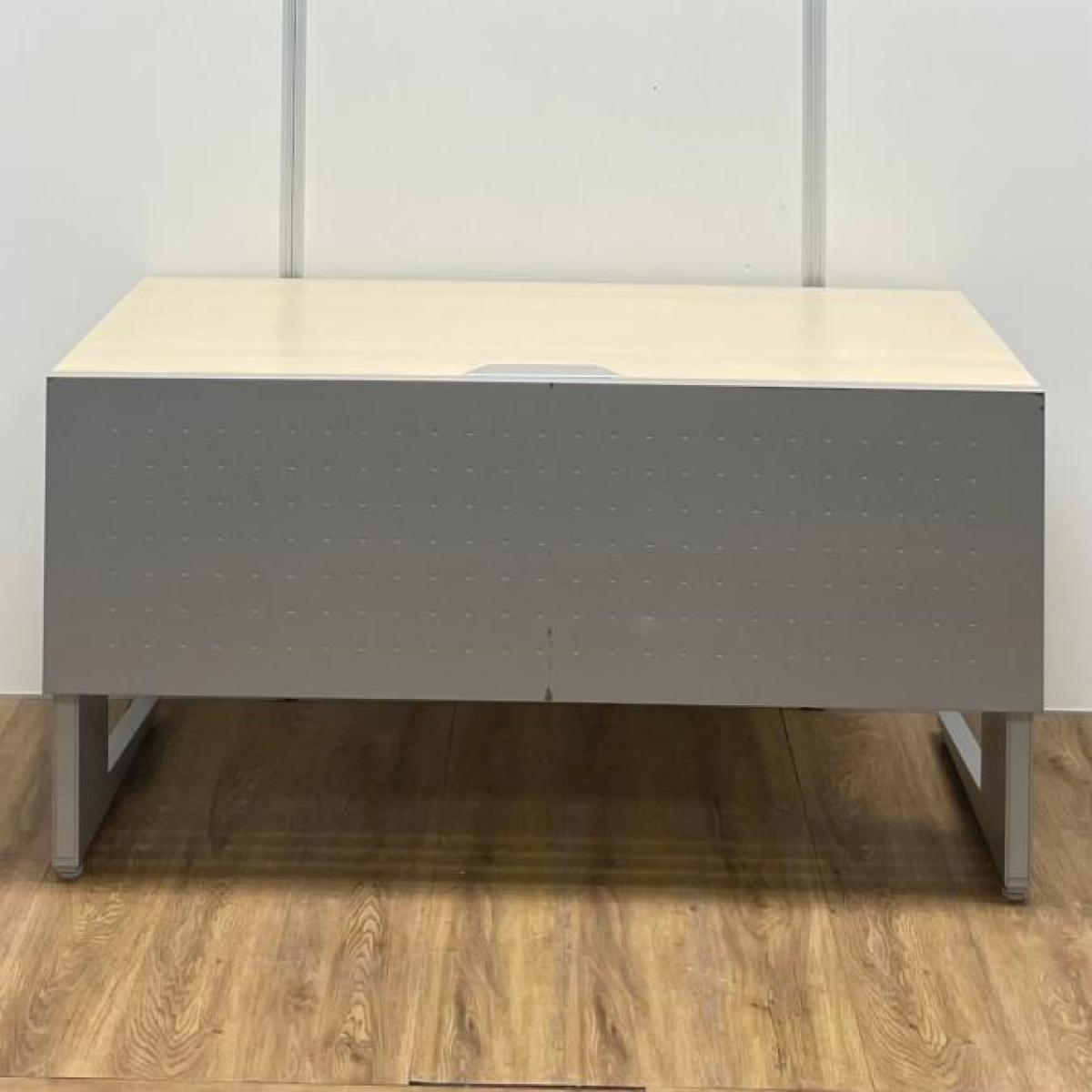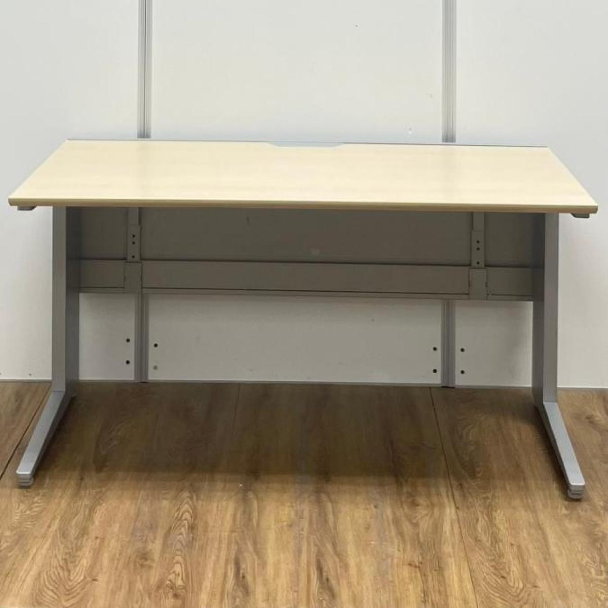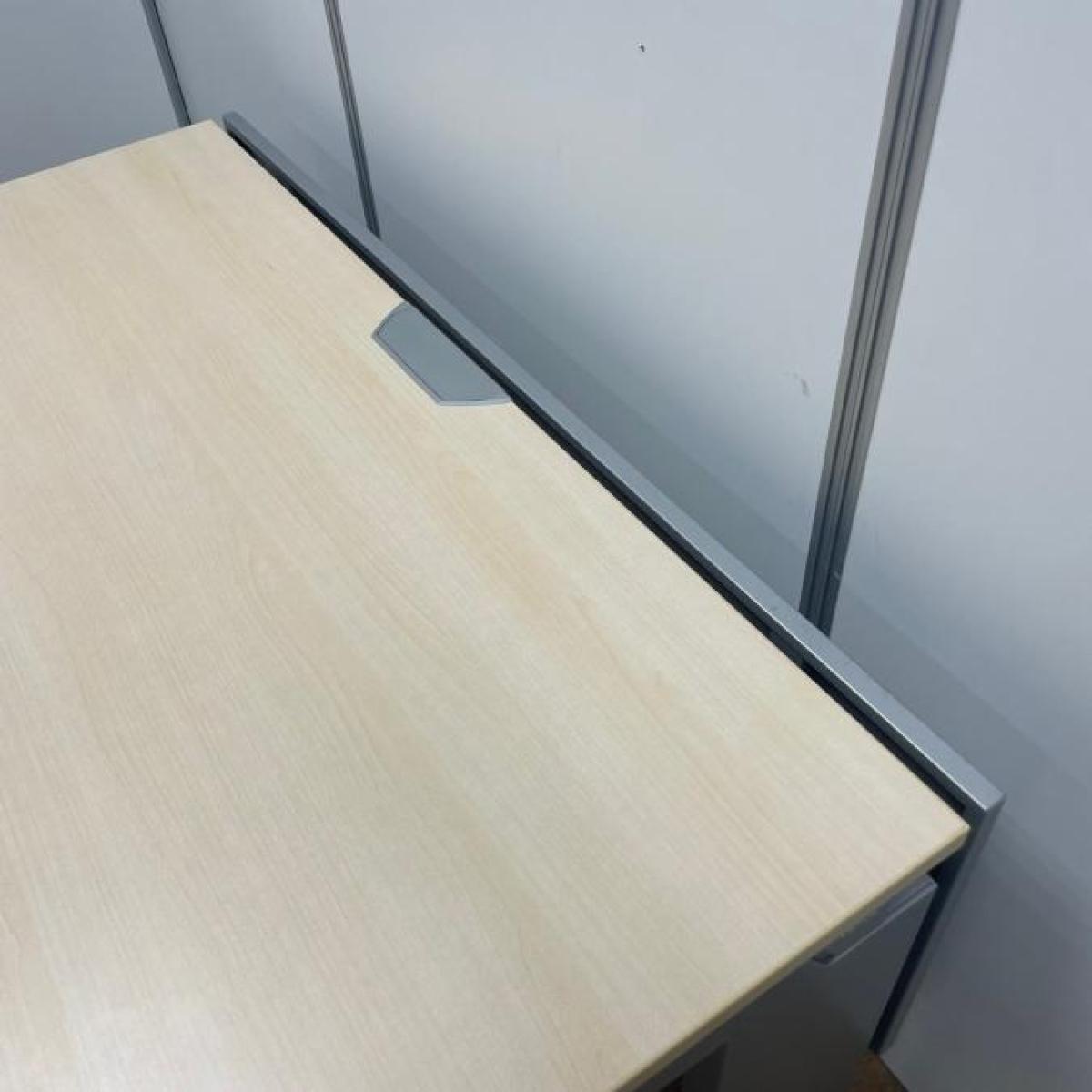 【商品入替のため、残り1台限り】オカムラ製 プロユニットシリーズ 木目ナチュラル天板×シルバー脚 幕板付 希少品!上長席や役員席にもおすすめ 注意※奥行735サイズ W1400平机!!- 京都東寺店