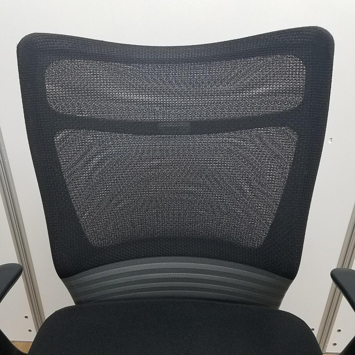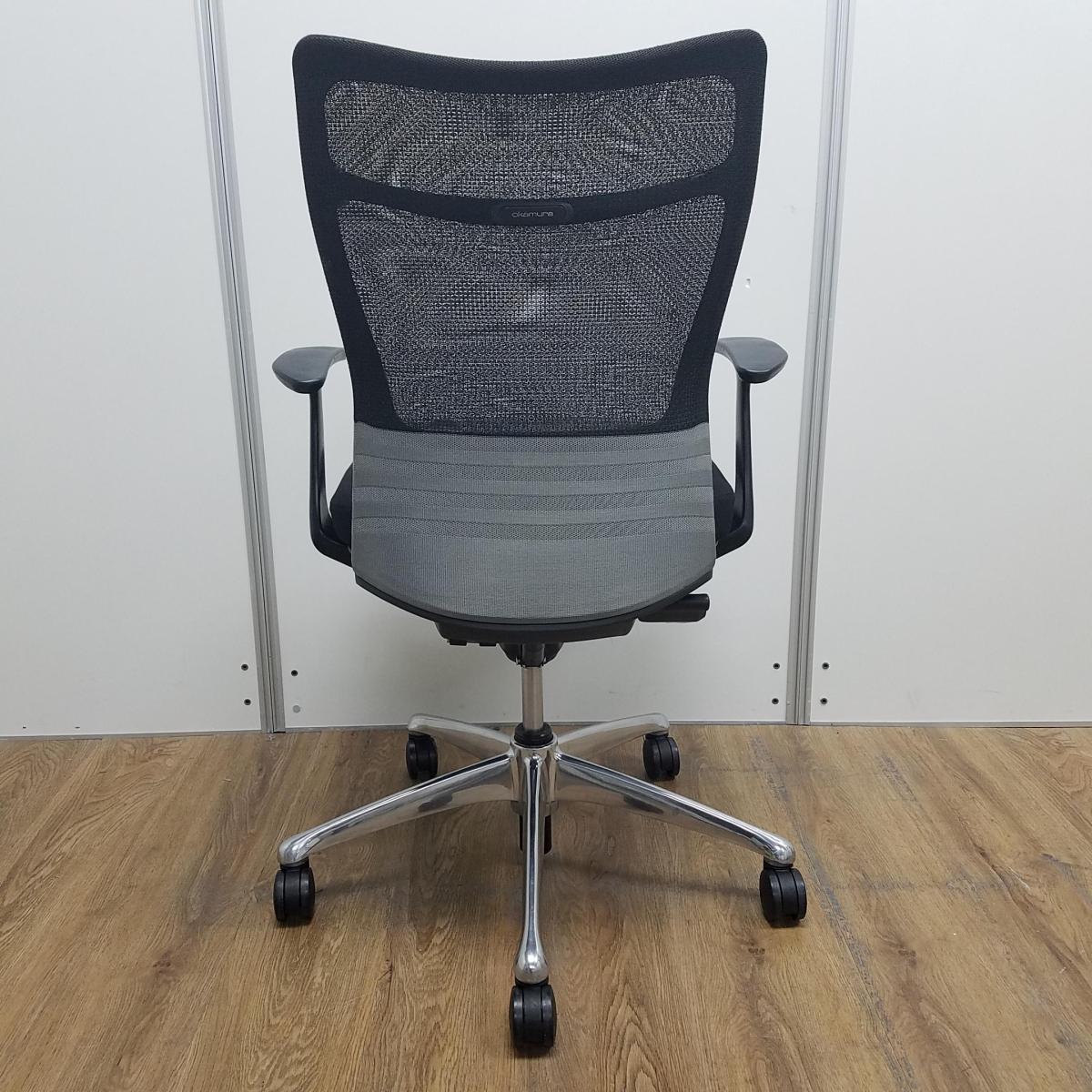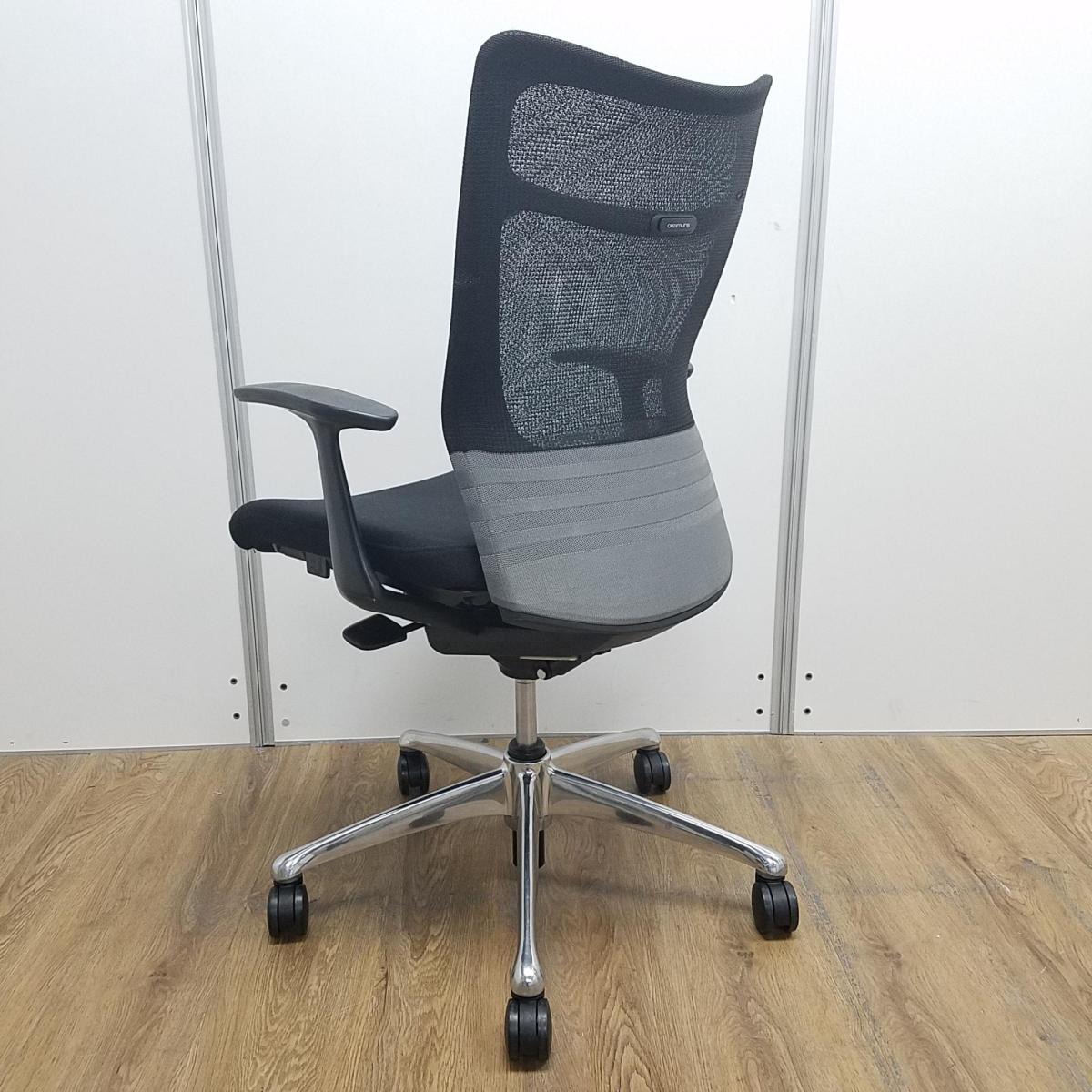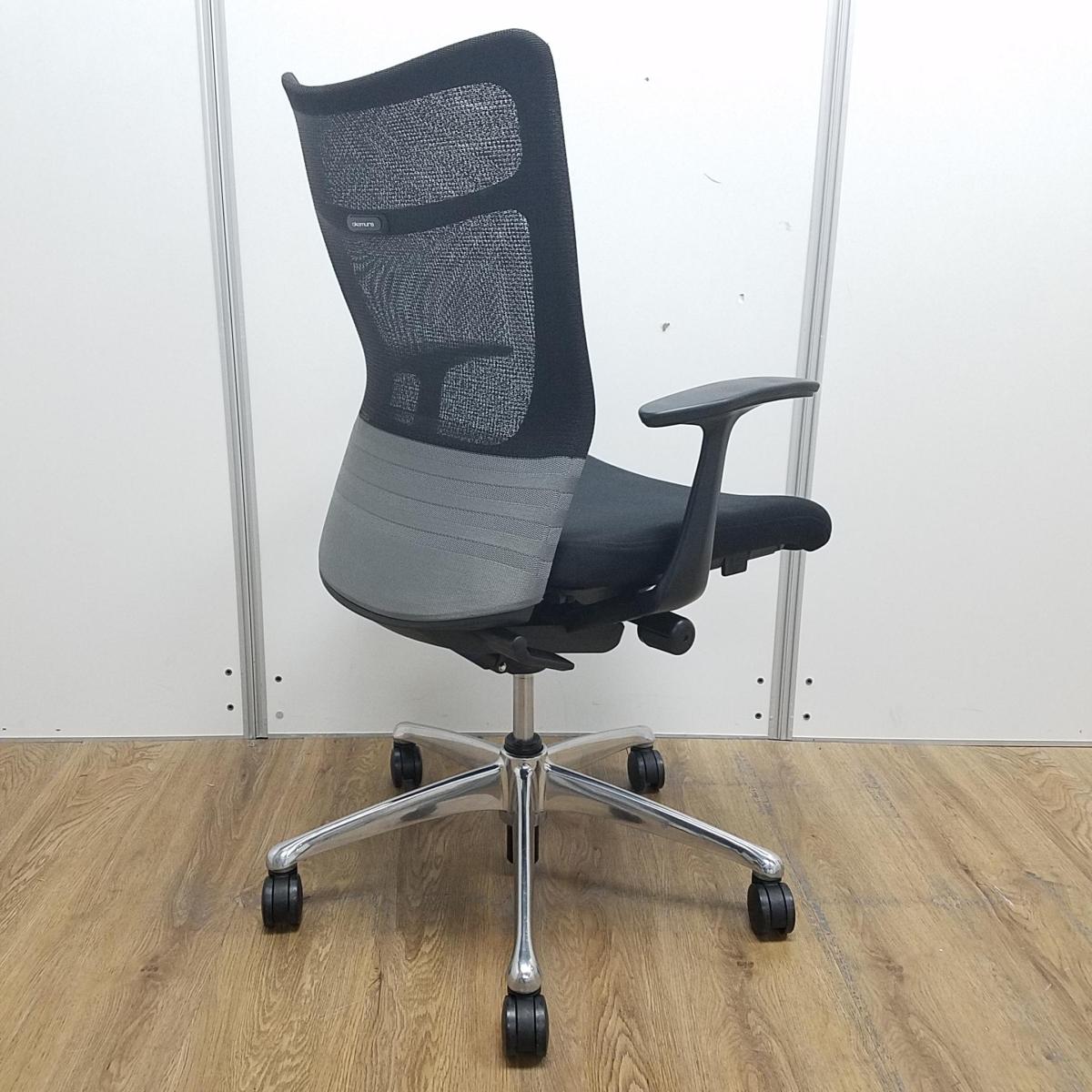 【訳あり品:破れ箇所やロッキング不具合あり】【商品入替のため、残り4脚限り】オカムラ製 フィーゴシリーズ 固定肘 背もたれメッシュ仕様 ダークグレー×ブラックフレーム 背あてのしなやかな曲線が背中にフィット!快適な座り心地に高級感のあるデザイン! 肘付きチェア!!※訳あり商品のため、保障対象外品になります。サーキュラーバリューCO2削減量の算出について