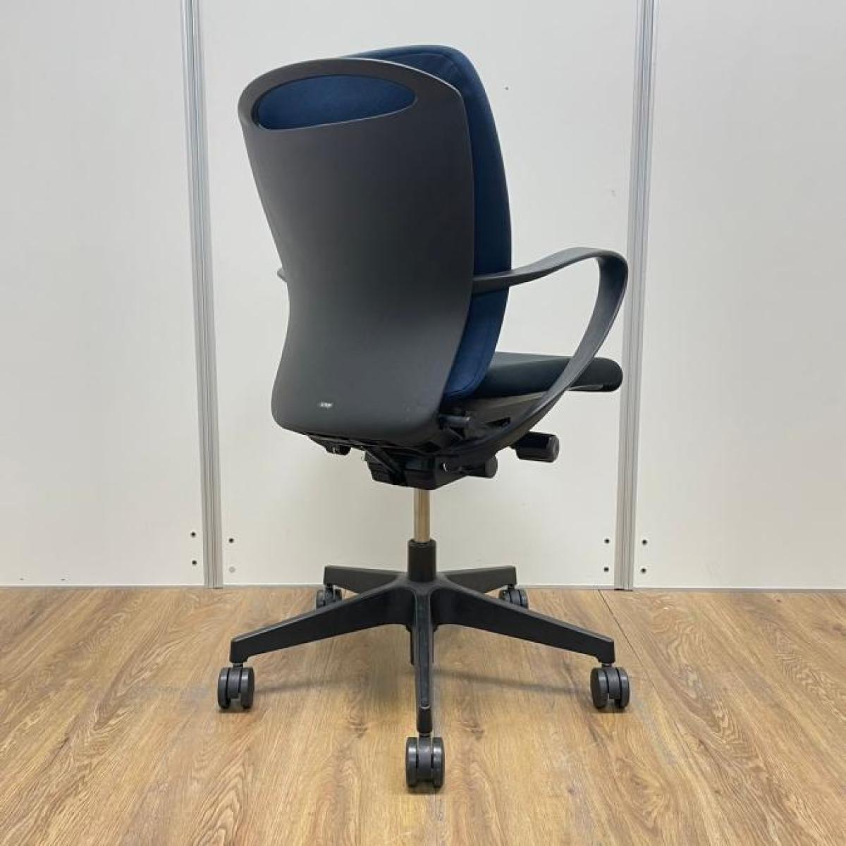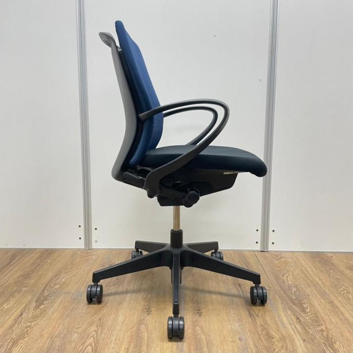 【商品入替のため、残り1脚限り】【背もたれ・座面使用感のすれあり】イトーキ製 人気高いフルゴシリーズ ブラック×ネイビーブルー 肘付きローバックチェア!!- 京都東寺店