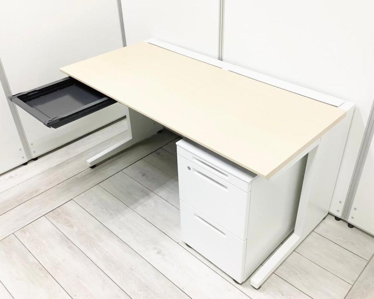【横幅1400サイズ!】疑似片袖机(セパレートタイプ)!ワゴンが動かせて便利なオフィスデスクです! ■コクヨ/IS/ナチュラル ※ワゴンの仕様は在庫状況によって異なります。サーキュラーバリューCO2削減量の算出について