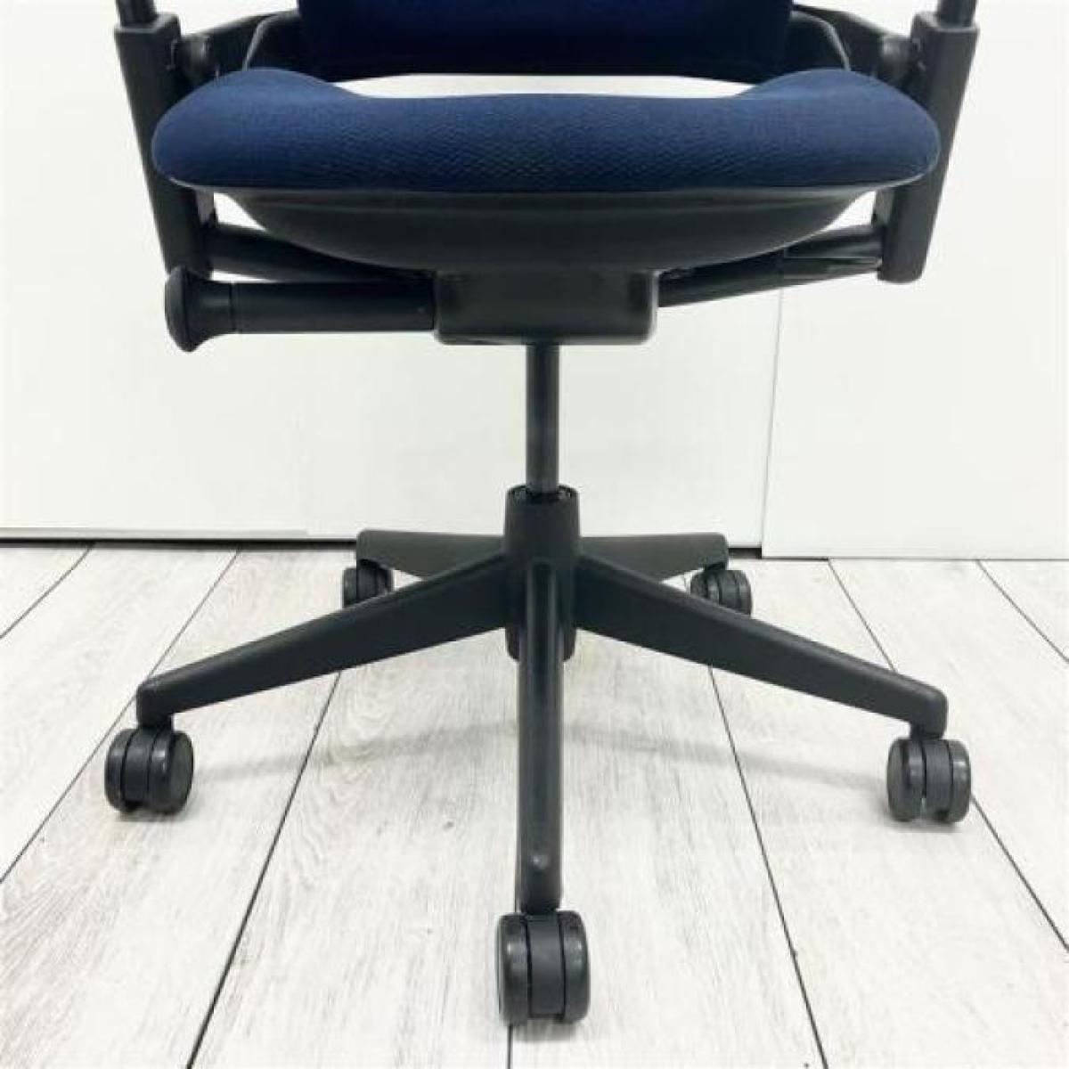 スチールケース製の可動肘付リープチェアのブルーカラーになります!!