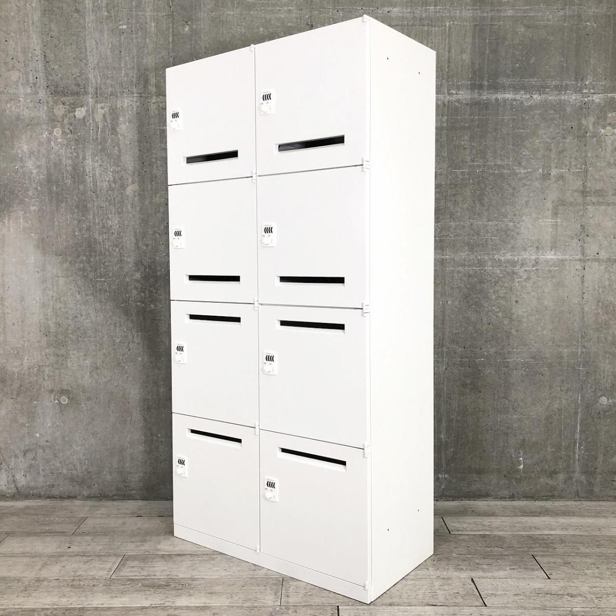【書類を投函できる投入口も搭載!ダイヤル錠タイプで鍵の紛失などの心配がなく管理がしやすい!】■オカムラ製 レクトライン 8人用パーソナルロッカー ■ホワイト ■ダイヤル錠タイプ- つくば店
