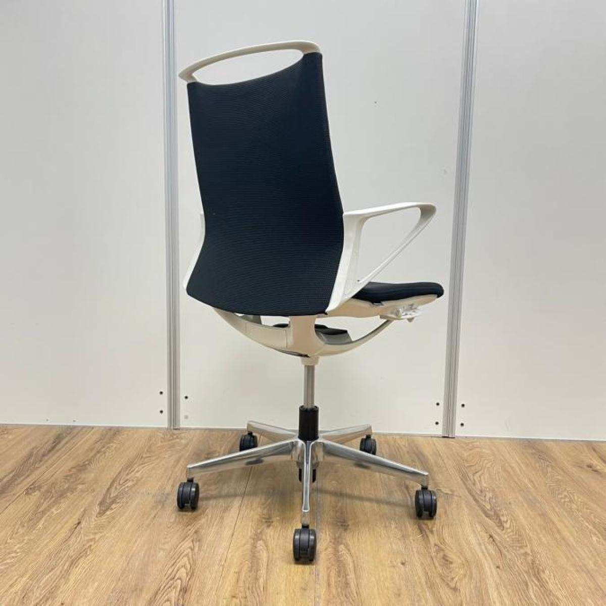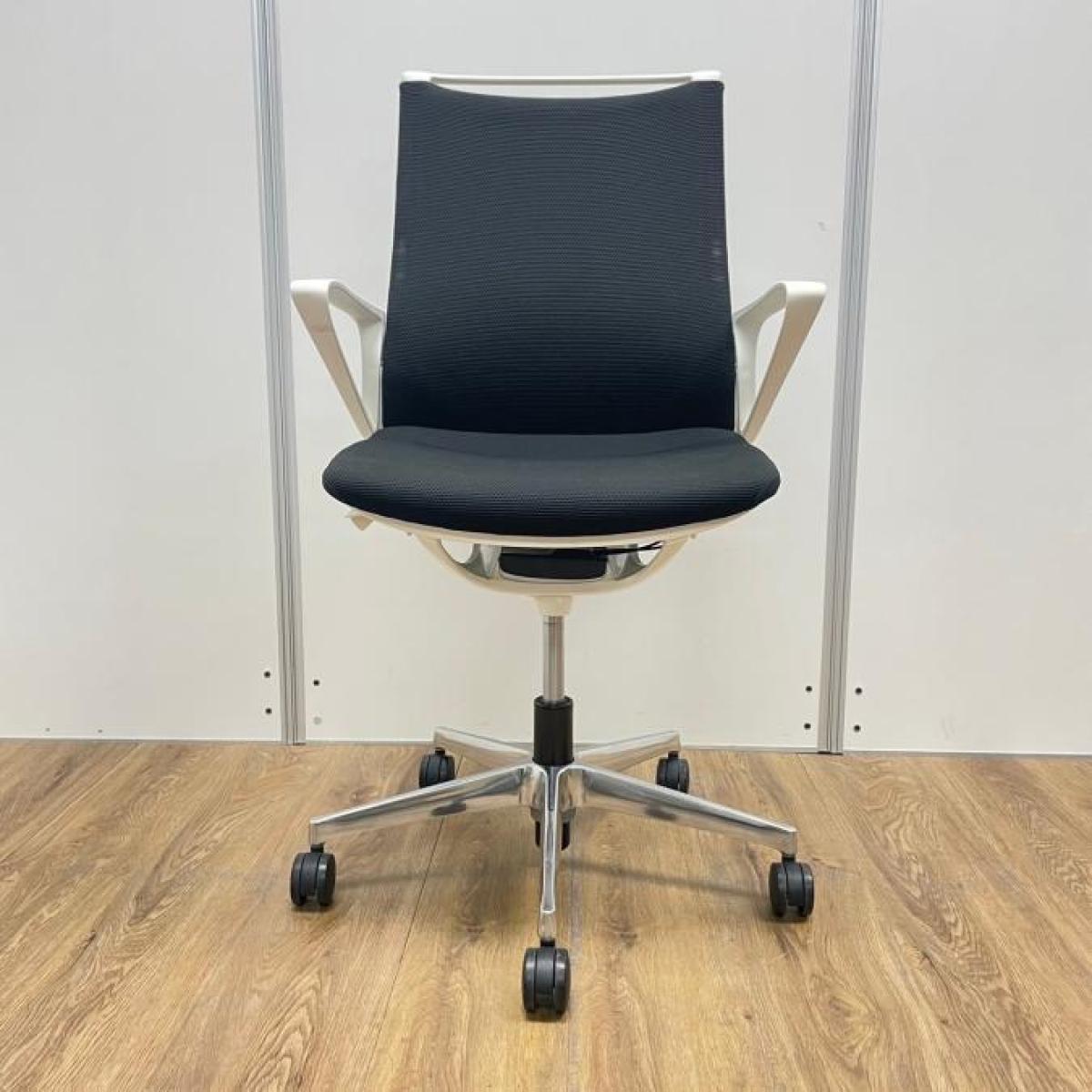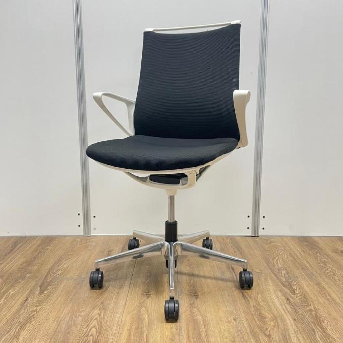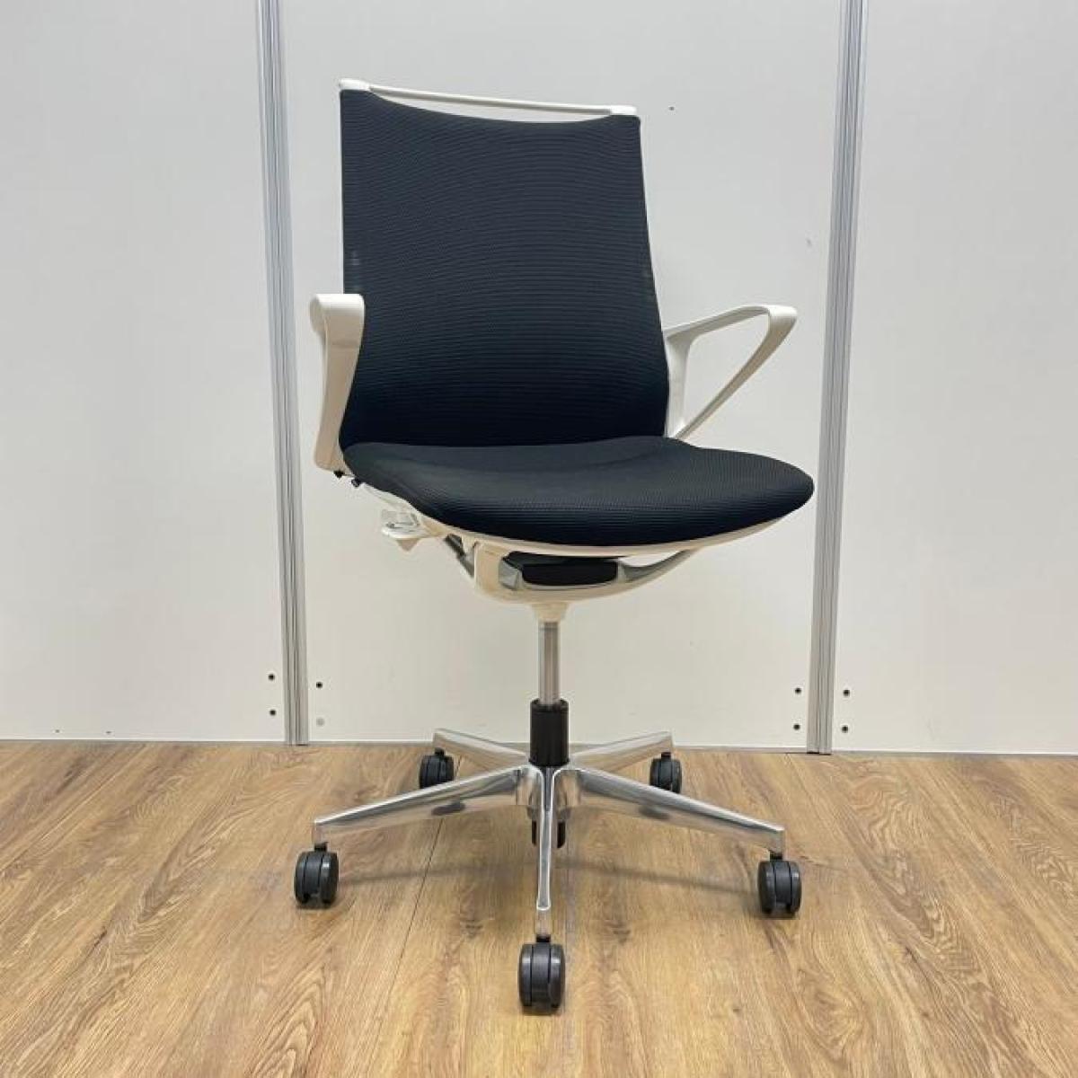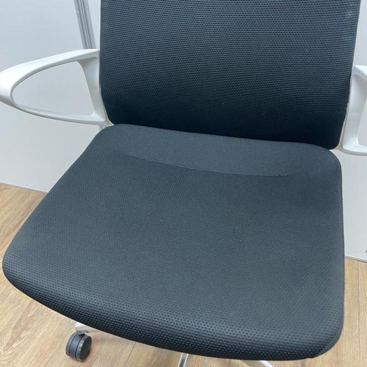 【残り2脚!おしゃれチェア入荷しました。】オカムラ製 モードシリーズ ブラックカラー ホワイトフレーム クロス仕様 固定肘 機能とデザインが融合~会議室やモダンなオフィスの執務用としてもオススメ 肘付きミドルバックチェア!!- 大阪・堺店