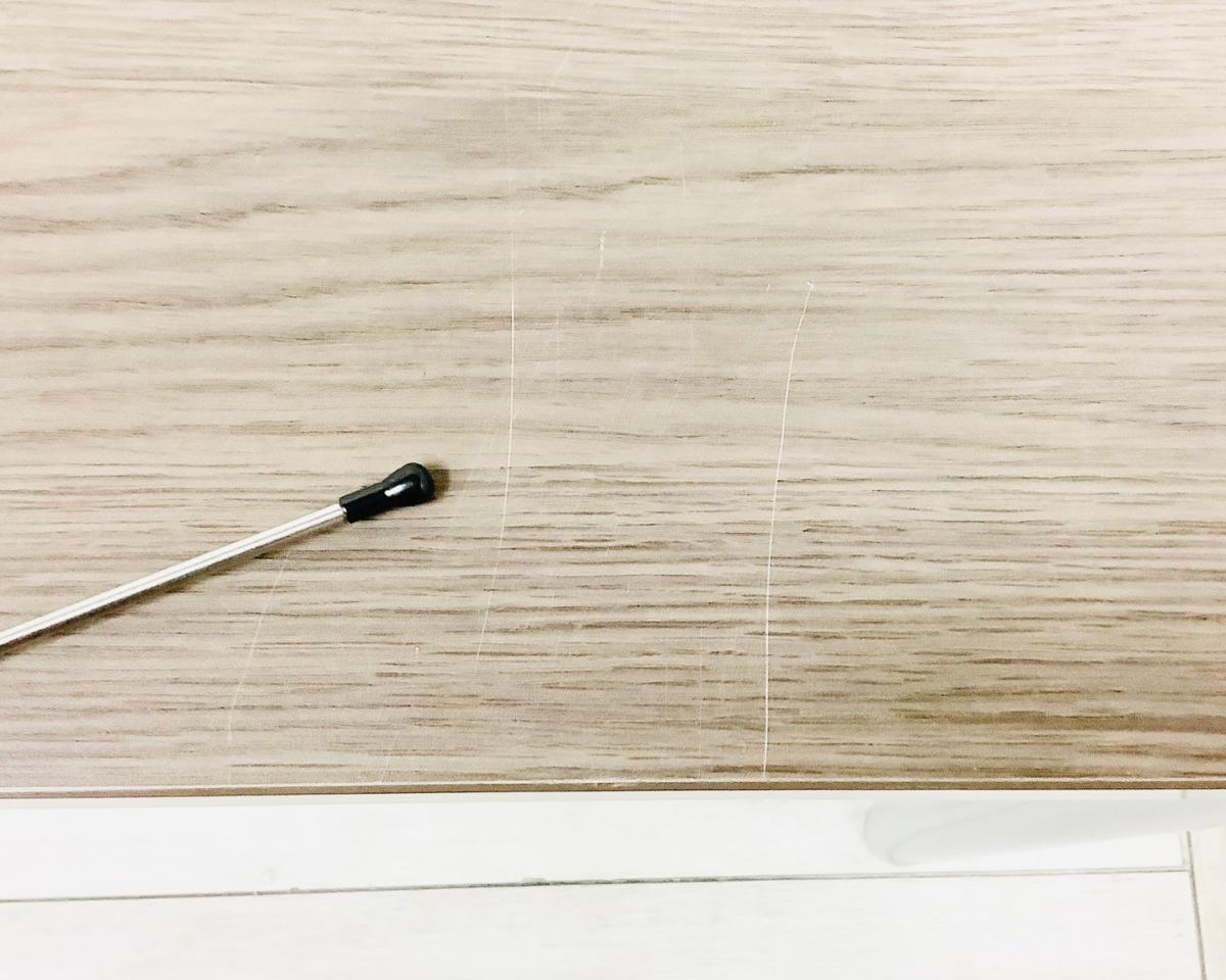 - 目立つ箇所あり傷・凹みが多数、深い傷・凹みが一部ある。(例、天板、幕板、棚板、サイド部分、脚部等にある。)