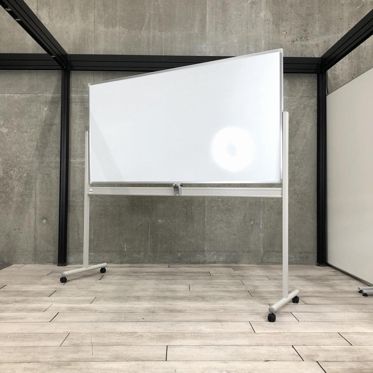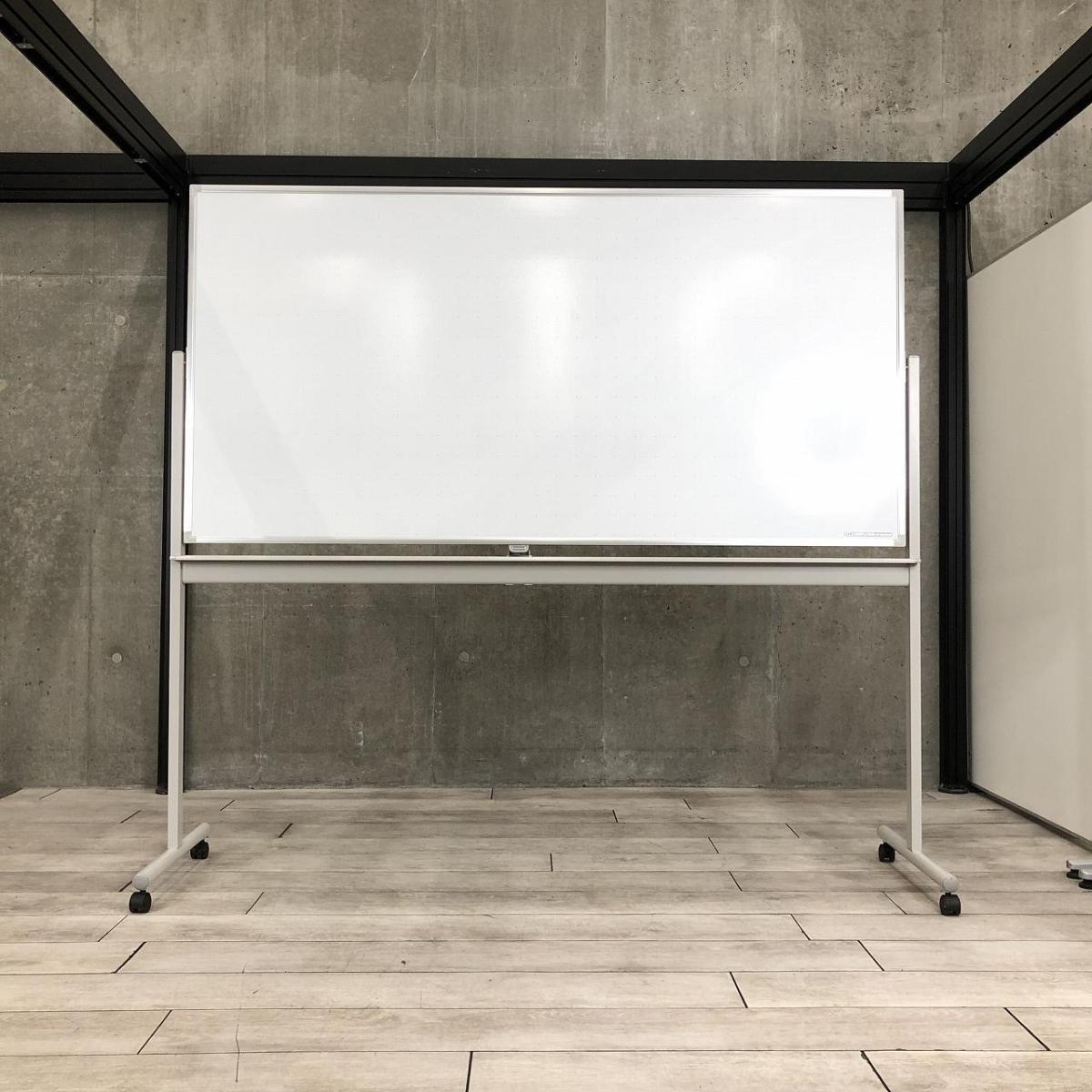 【オフィス会議の必需品!ミーティングにもオススメ!】■ウチダ(UCHIDA) 脚付ホワイトボード W1860×H1740mm 両面タイプ 回転可能 ■ホワイト ■キャスター付- 足立・葛飾店