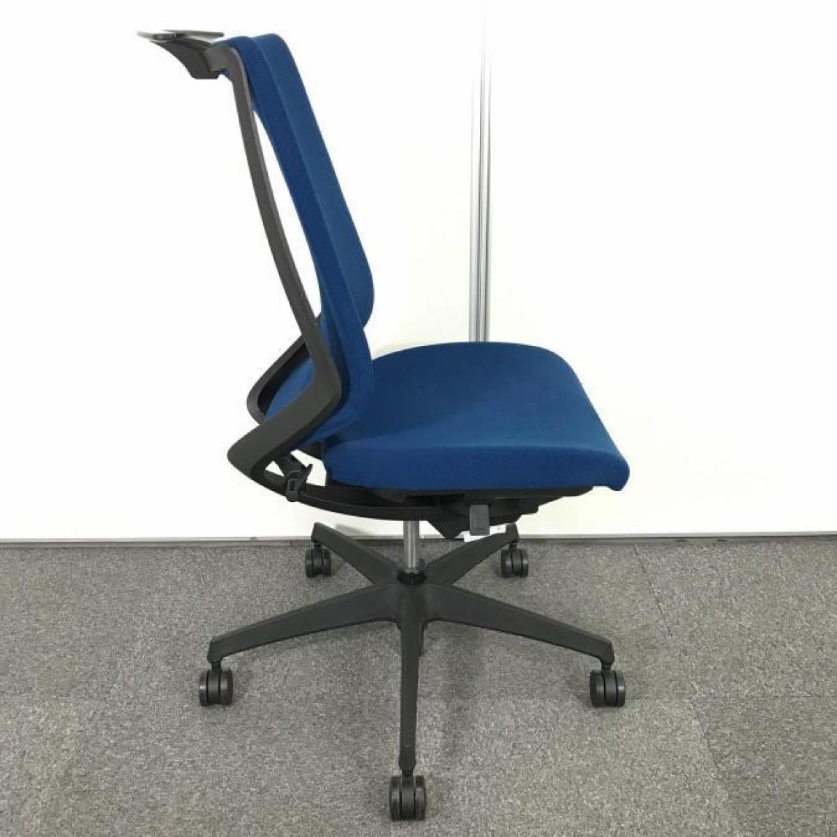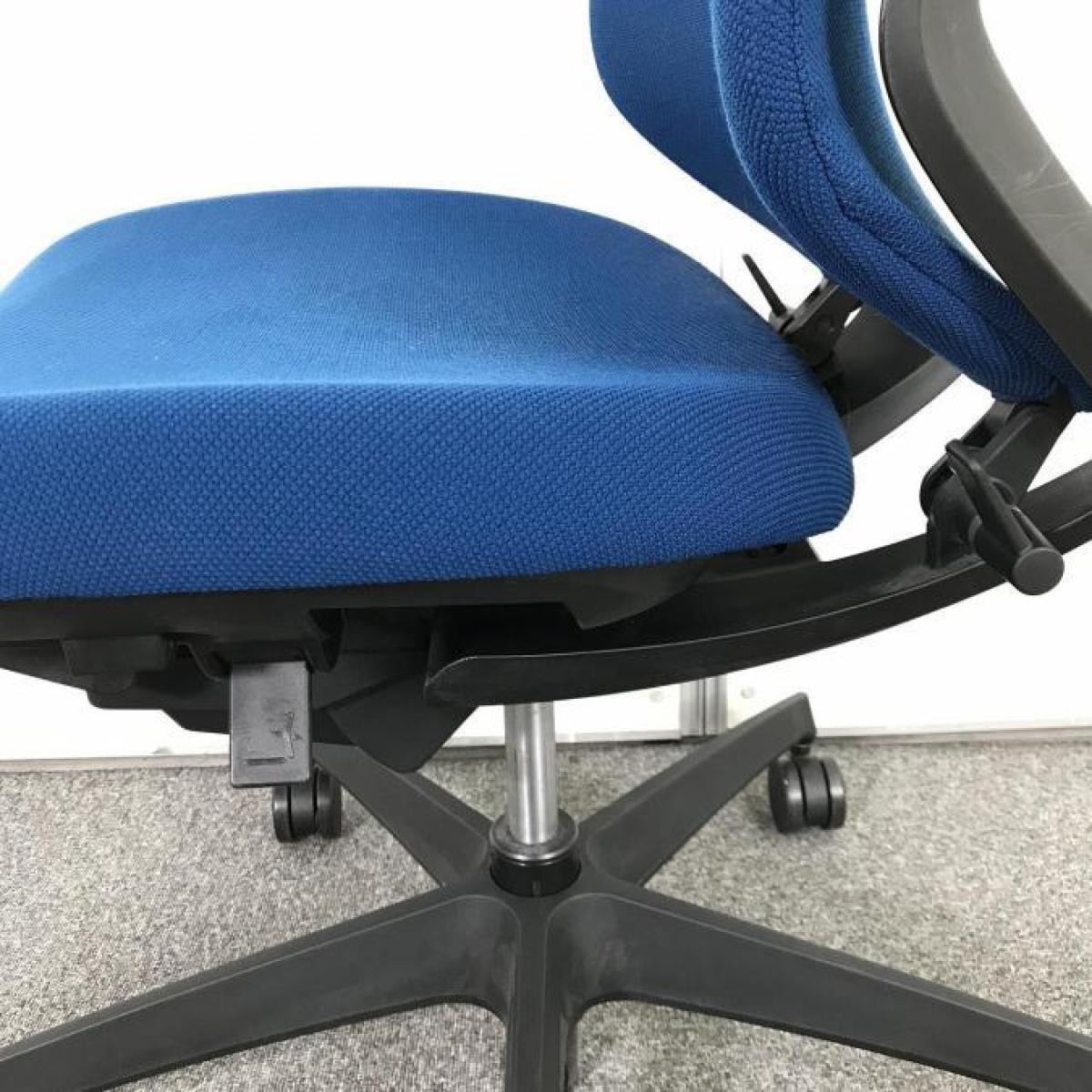 【在庫入替セール】コクヨ デュオラ 肘無しモデル クッションタイプ ブルー×ブラックフレームの定番のカラーリング コートハンガー付き ※背もたれに破れ有り【T9】