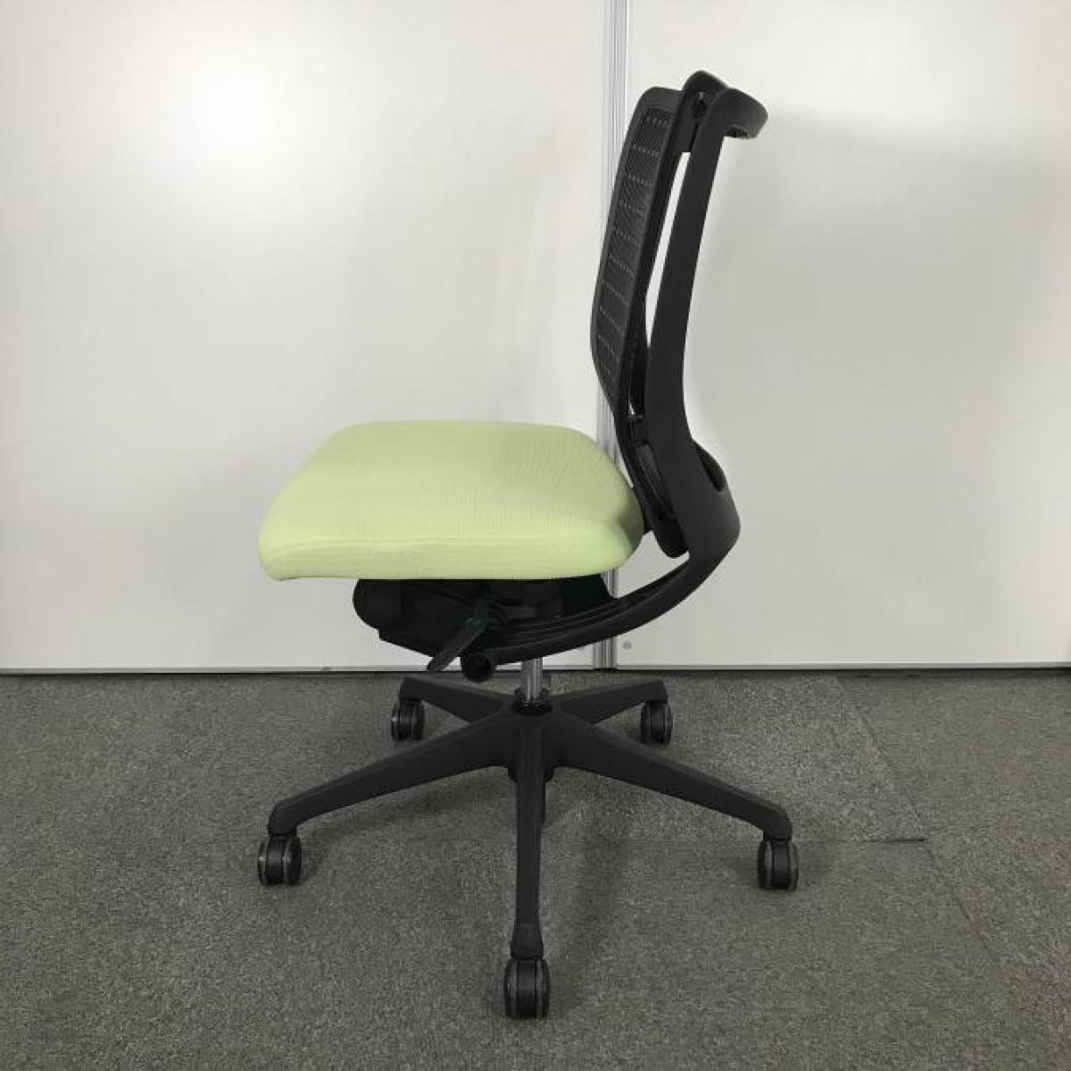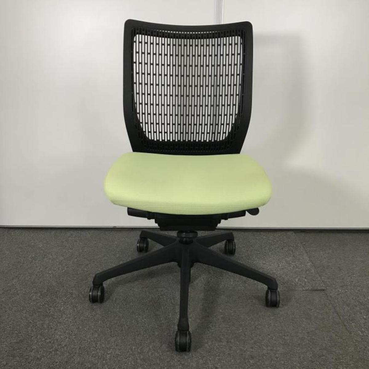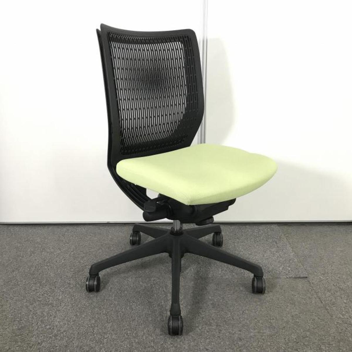 【在庫入替セール品【定価6万円】【快適さにリピーター続出!人間工学に基づいた快適な座り心地!】■オカムラ(okamura) ヴィスコンテ(Visconte) プレーンタイプ 肘無ローバック 背面メッシュ ■背面:ブラック/座面:ピスタチオグリーン