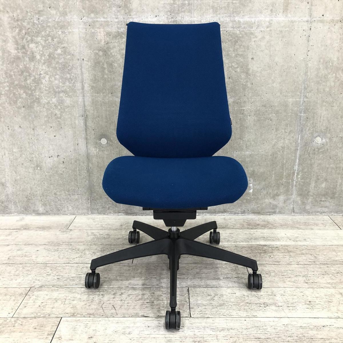 【在庫入替セール】コクヨ デュオラ 肘無しモデル クッションタイプ ブルー×ブラックフレームの定番のカラーリング コートハンガー付き ※背もたれに破れ有り【T9】