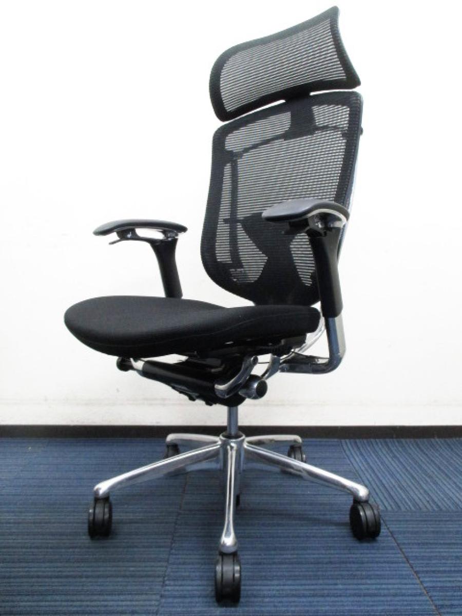 【世界で認められた革新的タスクチェア!】■オカムラ コンテッサチェア 可動肘付 ブラック 大型ヘッドレスト付 ■人間工学に基づいた快適な座り心地を実現!【Okamura Contessa】- 川崎店