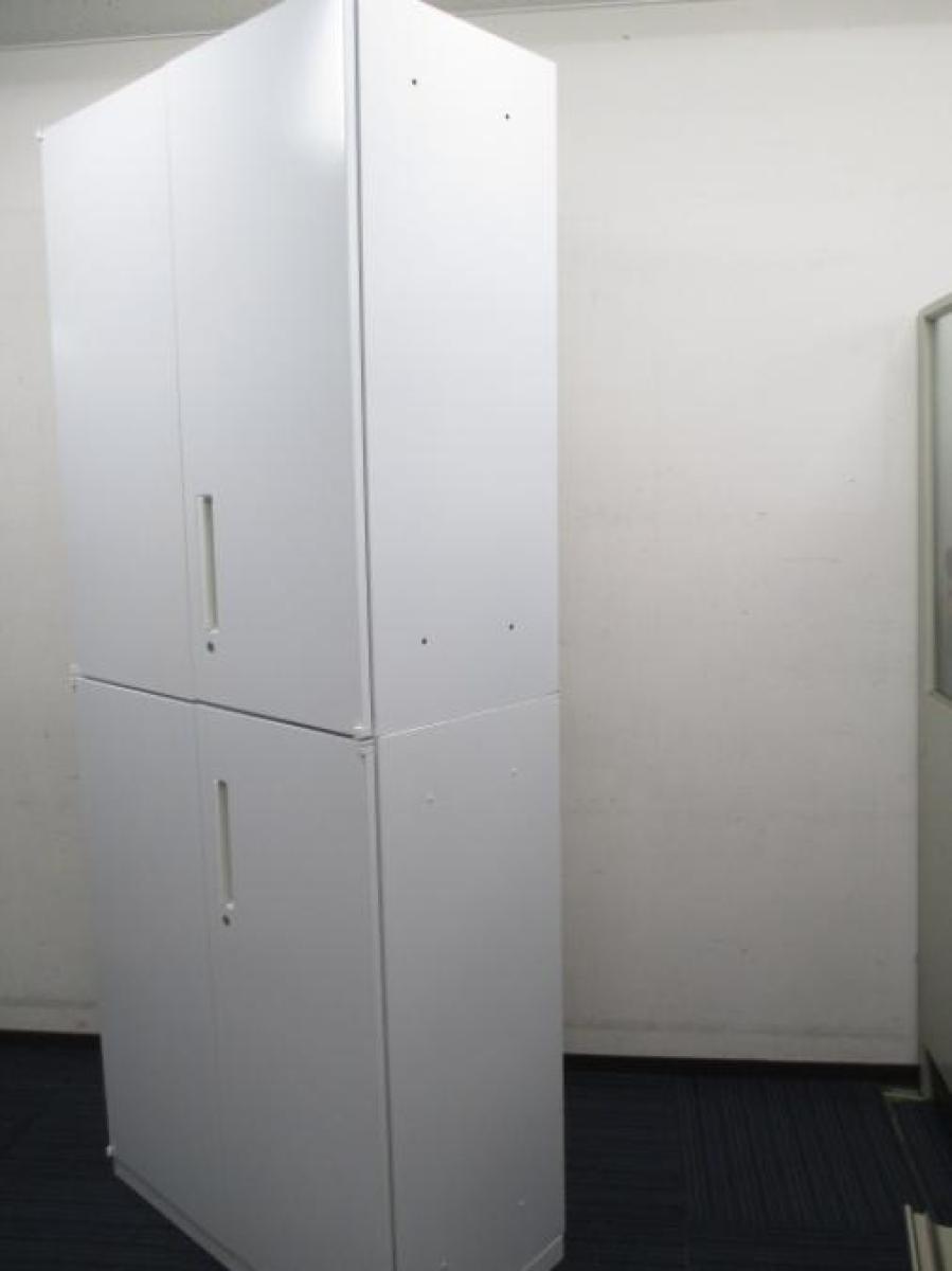 内田洋行 HSシリーズ 両開き+両開き書庫 鍵付き シリンダー錠 ホワイト A4×6段分の収納可能 ※取っ手部分に日焼けあり 【愛知・名古屋・豊田・静岡・浜松】