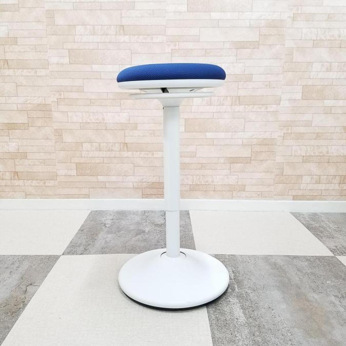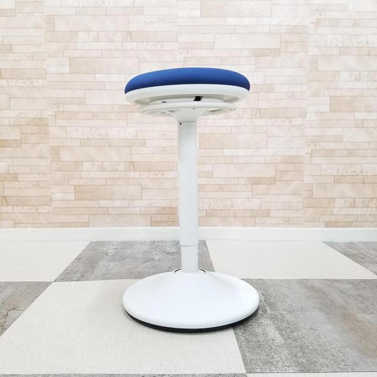【「座る」と「立つ」のいいとこ取り!】■オカムラ(okamura) ピルエット カウンターチェア スツール ■ブルー シェル:ホワイト【高さ調節可能なパーチングスツール!】- 大阪・堺店