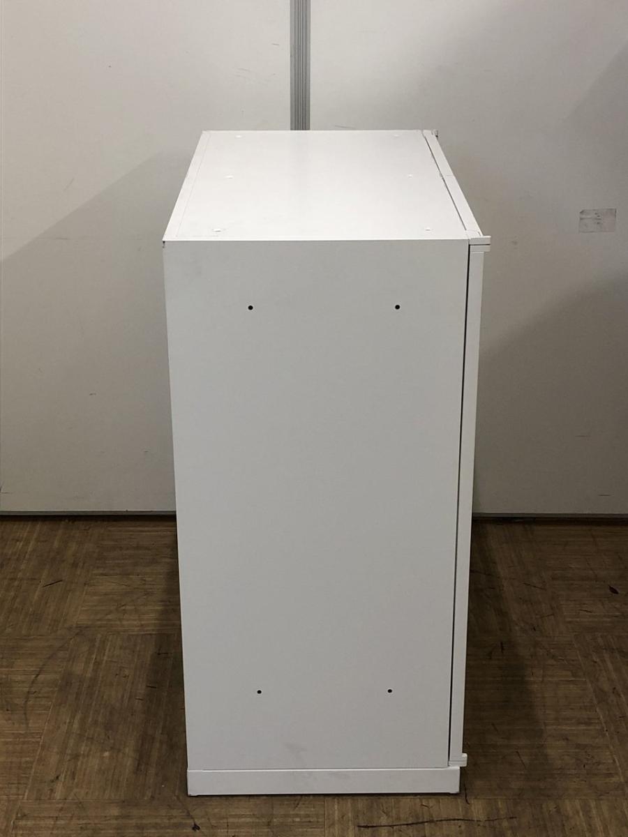 人気のホワイト色、観音開き扉タイプ・幅800mmの少しスリムなサイズ感の書庫です。