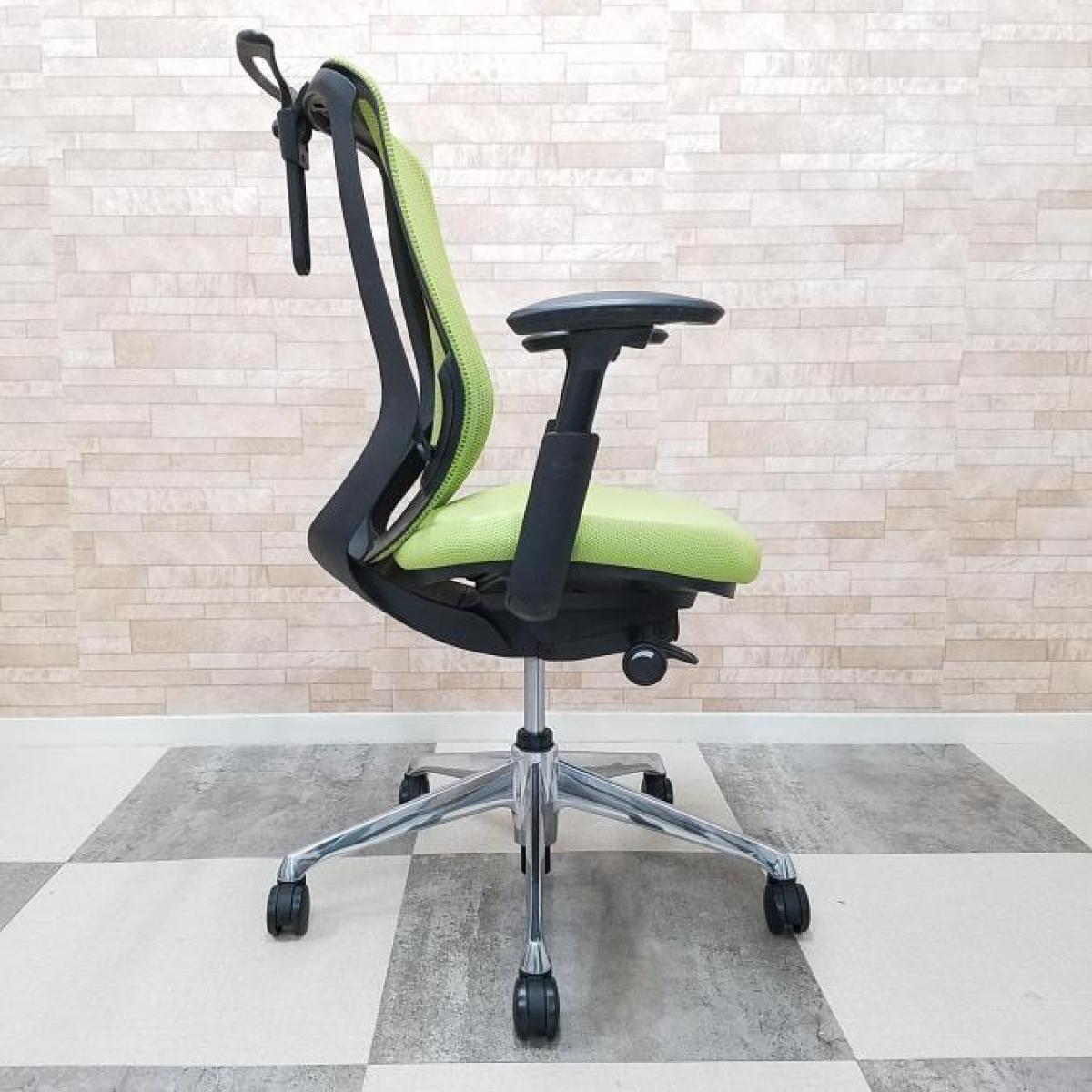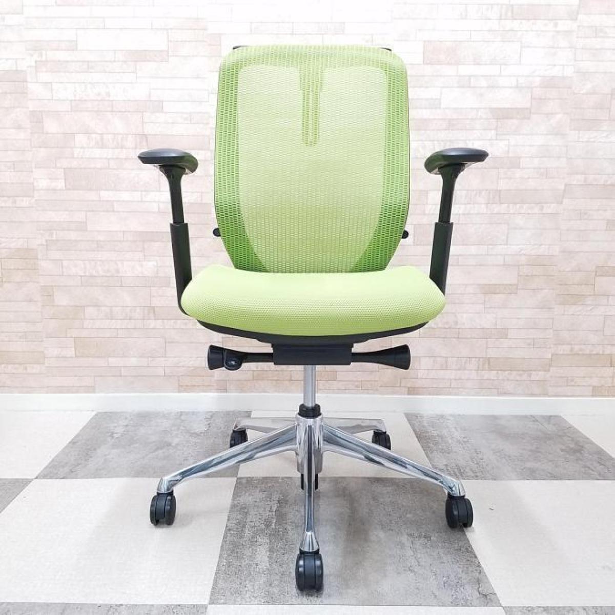【前傾チルト機能付き!オカムラ製品で最も人気を集める高機能メッシュチェア!】■オカムラ(okamura)製 シルフィ(Sylphy)チェア ハイバック 肘付き ■可動肘 ■ライムグリーン × ホワイトシェル【状態良好品!】
