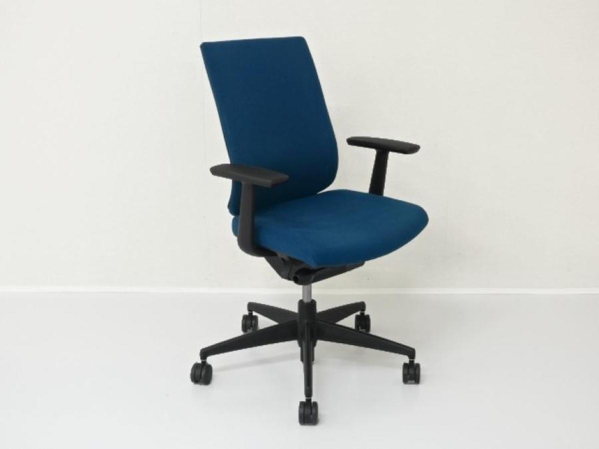 上下昇降機能に加え、ロッキングフリー、奥行調整機能、固定肘付き、人気のブルーカラーでオススメチェアとなります。