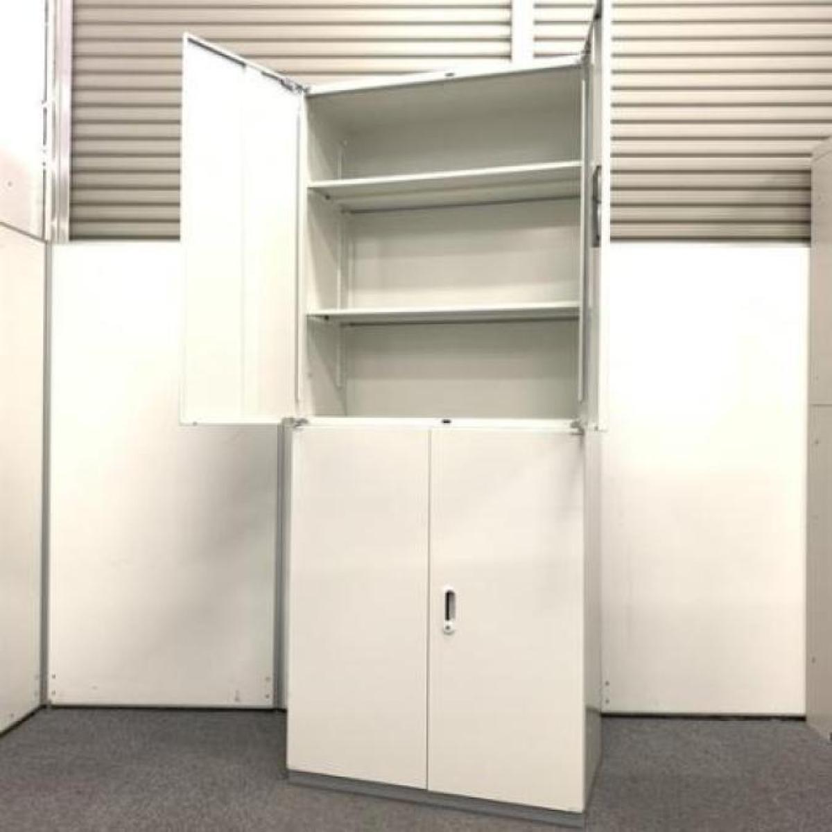 収納物の検索・整理に便利な観音開きタイプの書庫を上下に組み合わせたセットです。