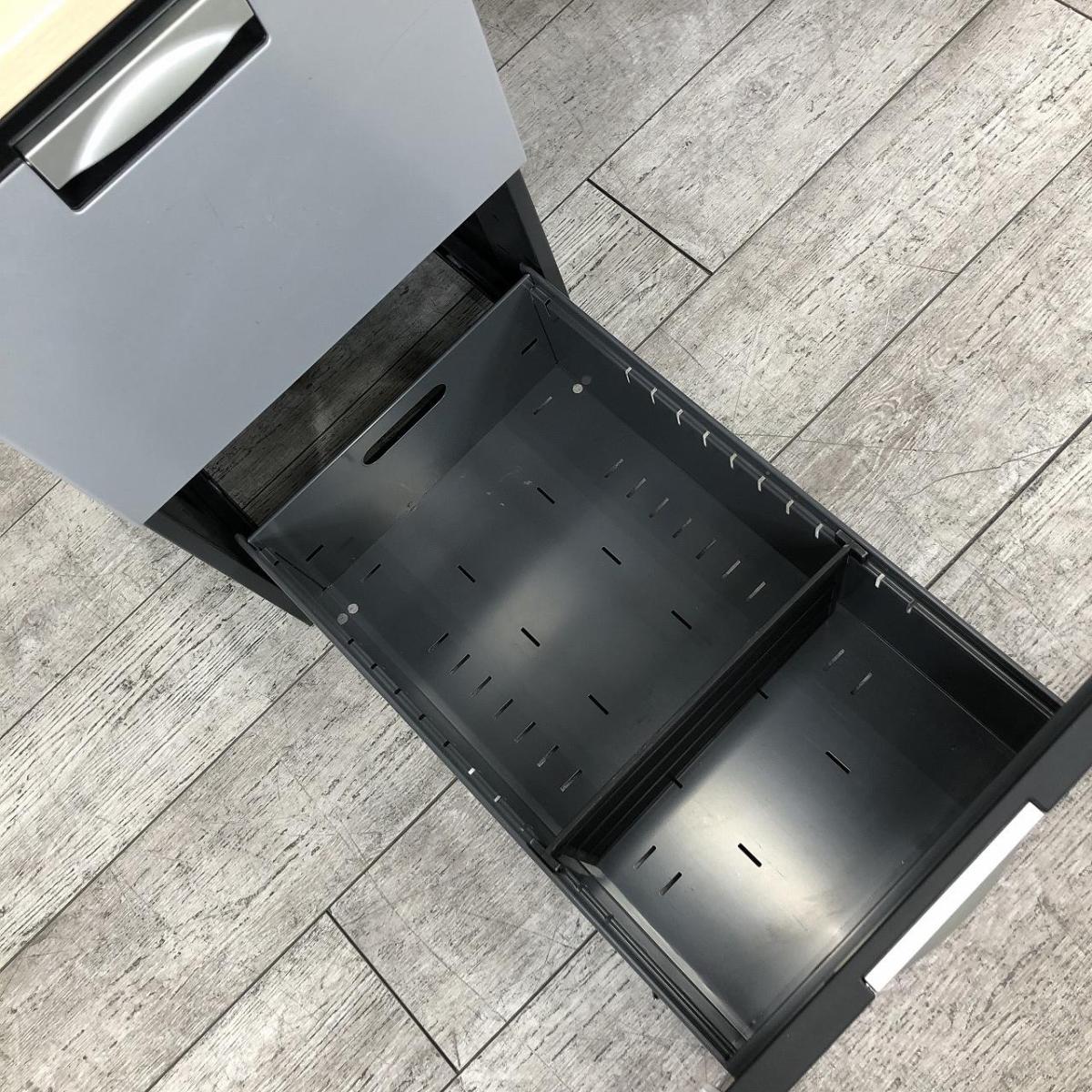 天板と袖収納というシンプルな構成ながら、効率的かつ機能的な収納により、