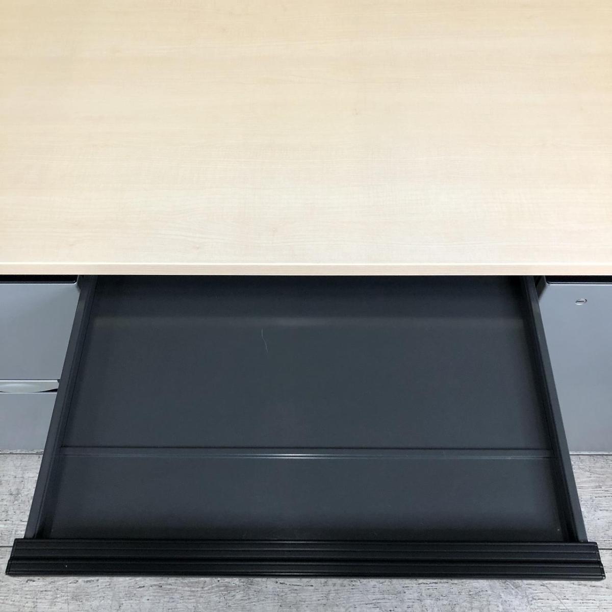 【スタイリッシュなデザインの両袖机!右側が引き出し式の棚のタイプ!】■コクヨ (KOKUYO) デルフィ (Delphi) 両袖デスク W1400mm ■左袖:2段 右袖:引き出し式棚 ■天板:ナチュラル 本体:シルバー&ブラック在庫がある店舗一覧